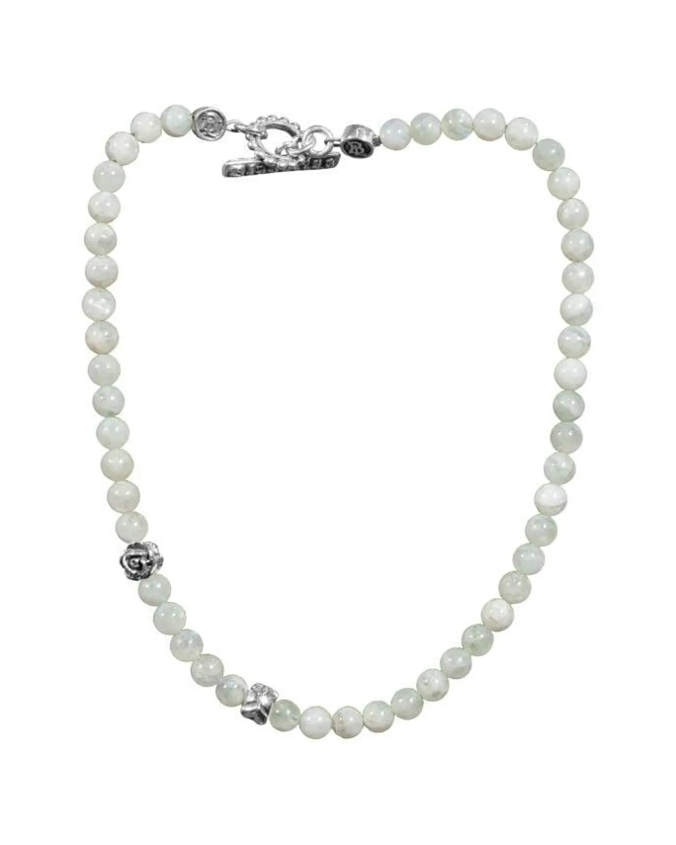 Bloodline Design double wrap bead bracelet features a sterling silver rose bead and a trilogy bead with 6mm gemstone beads on a multi-strand stainless steel cable and double crimped for exceptional strength and wear-ability. Solid Sterling Silver toggle clasp.