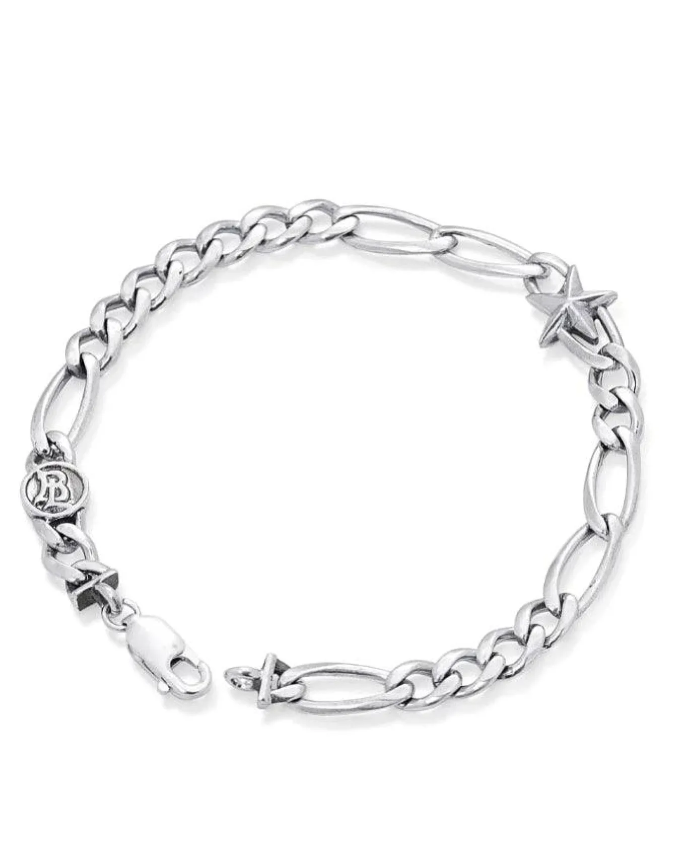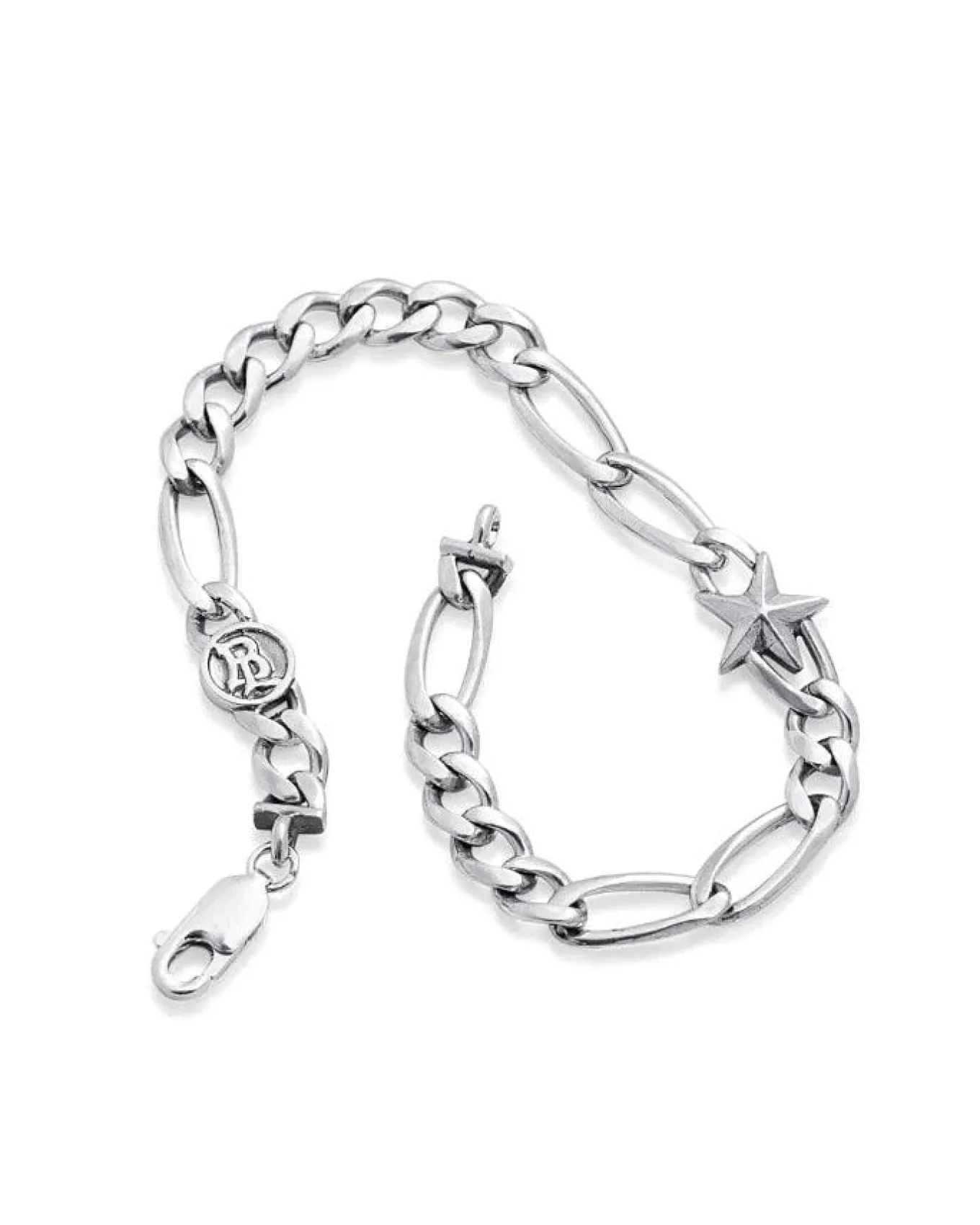 Bloodline Design solid sterling silver Figaro star chain bracelet, adorned with a star, Bloodline logo and lobster clasp. Link Width 6.5mm.