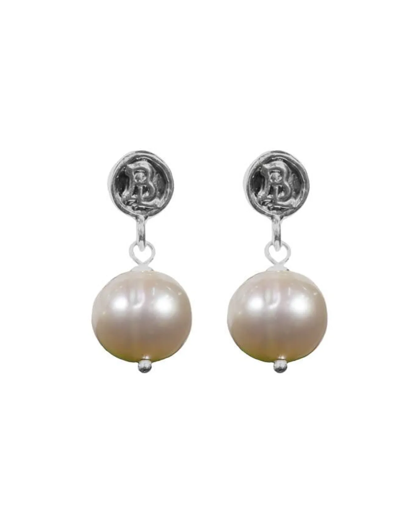 Bloodline Design logo stud with pearl drop earrings, Earring Size 20mm.