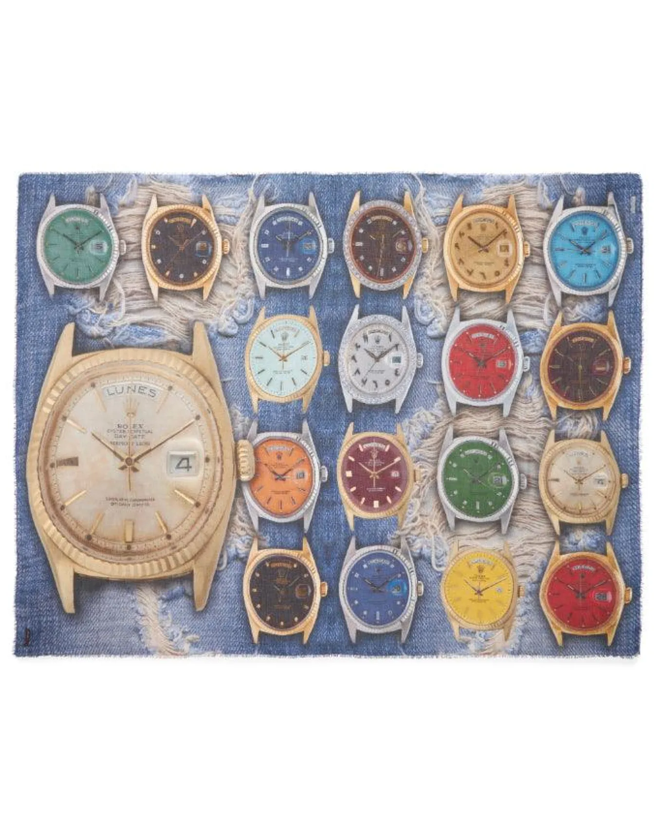 Colorful collection of watches scarf, 140 cm x 175 cm