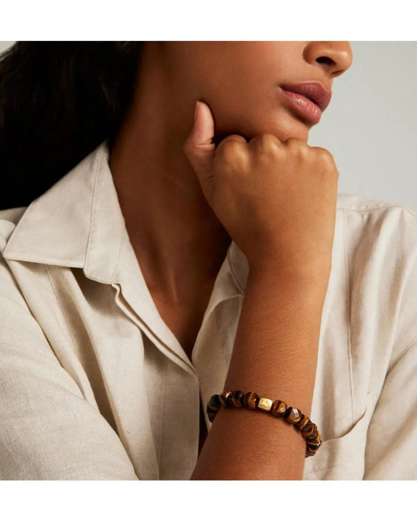 Dean Davidson string of small hand-faceted 12mm gemstones between hammered gold details offer an elevated take on the beaded bracelet.