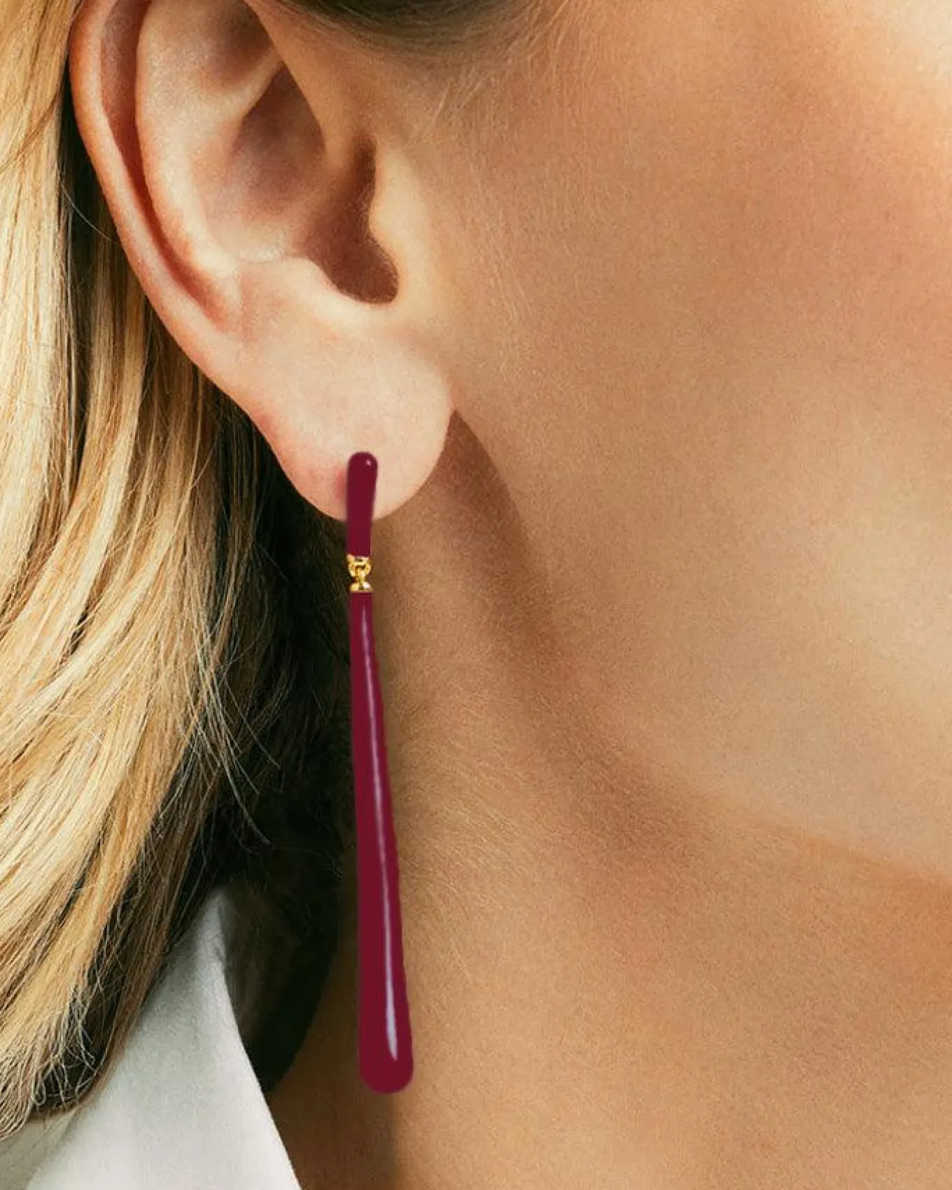 Dean Davidson touch of drama bright hand panted enamel drop huggies. Sleek elongated teardrop shape with a subtle sway. Length 0.2.3″.