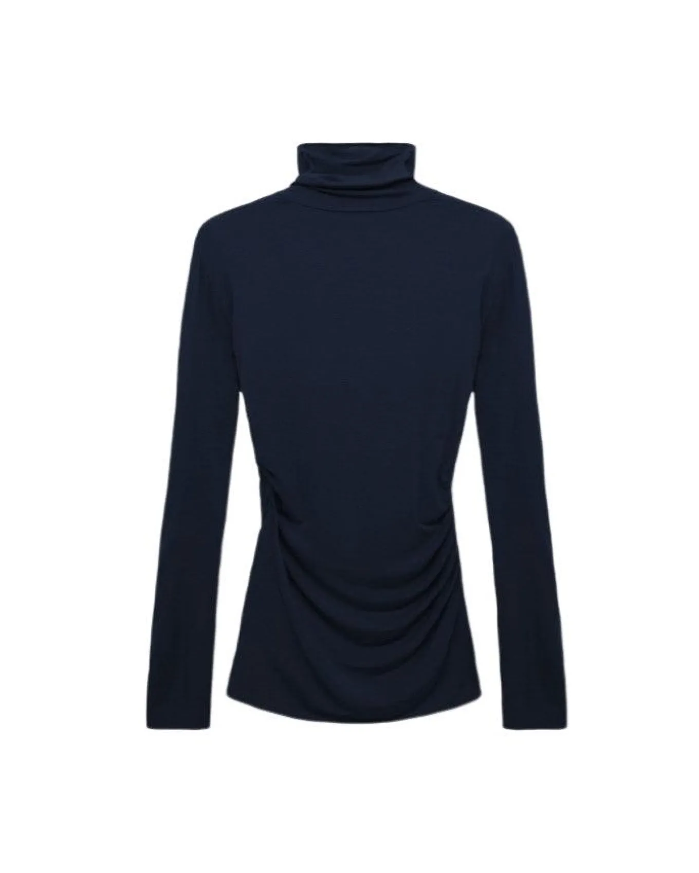Dorothee Schumacher loose fit, comfortable two-way stretchy modal cashmere turtleneck with gathered pleating on the sides.