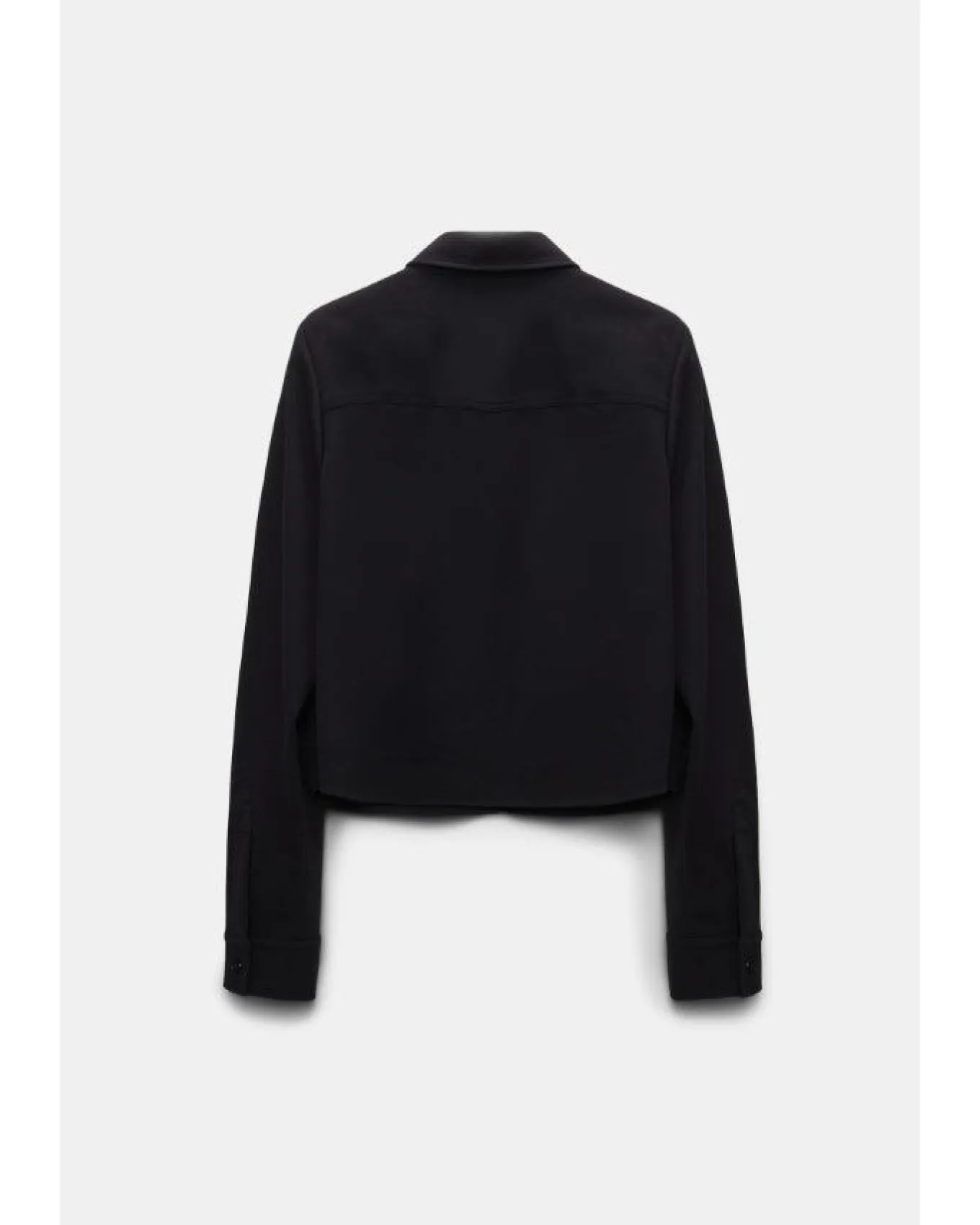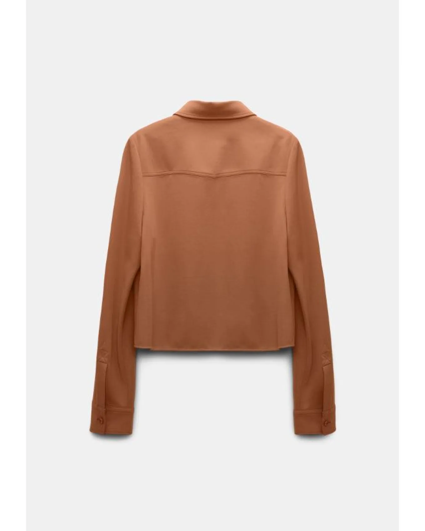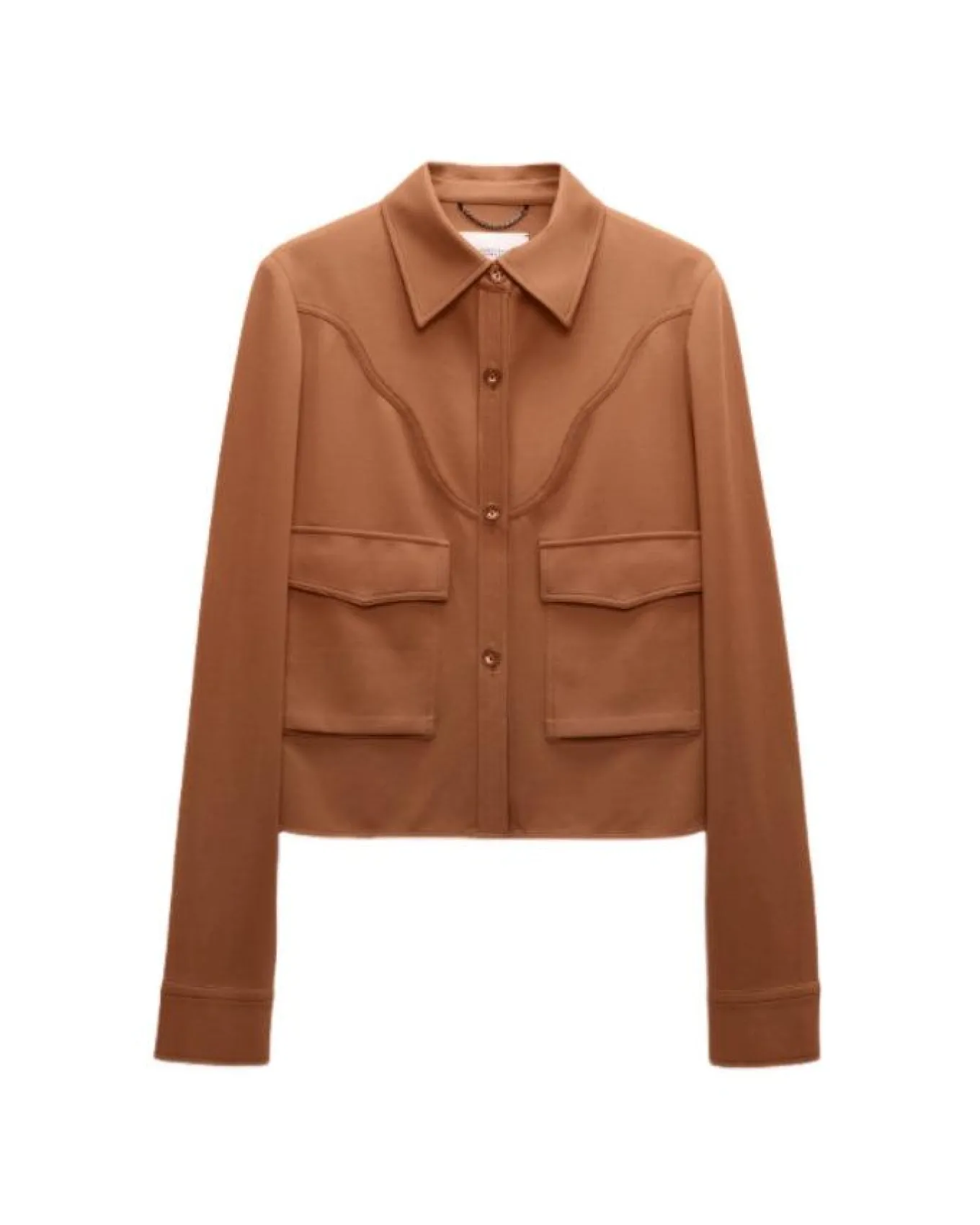 Dorothee Schumacher shirt-jacket hybrid is made from Punto Milano and has Western-inspired patterning on the front. The shirt-jacket is croppedwith classic collar, button front closure, flap pockets, button cuffs, back yoke and is unlined.