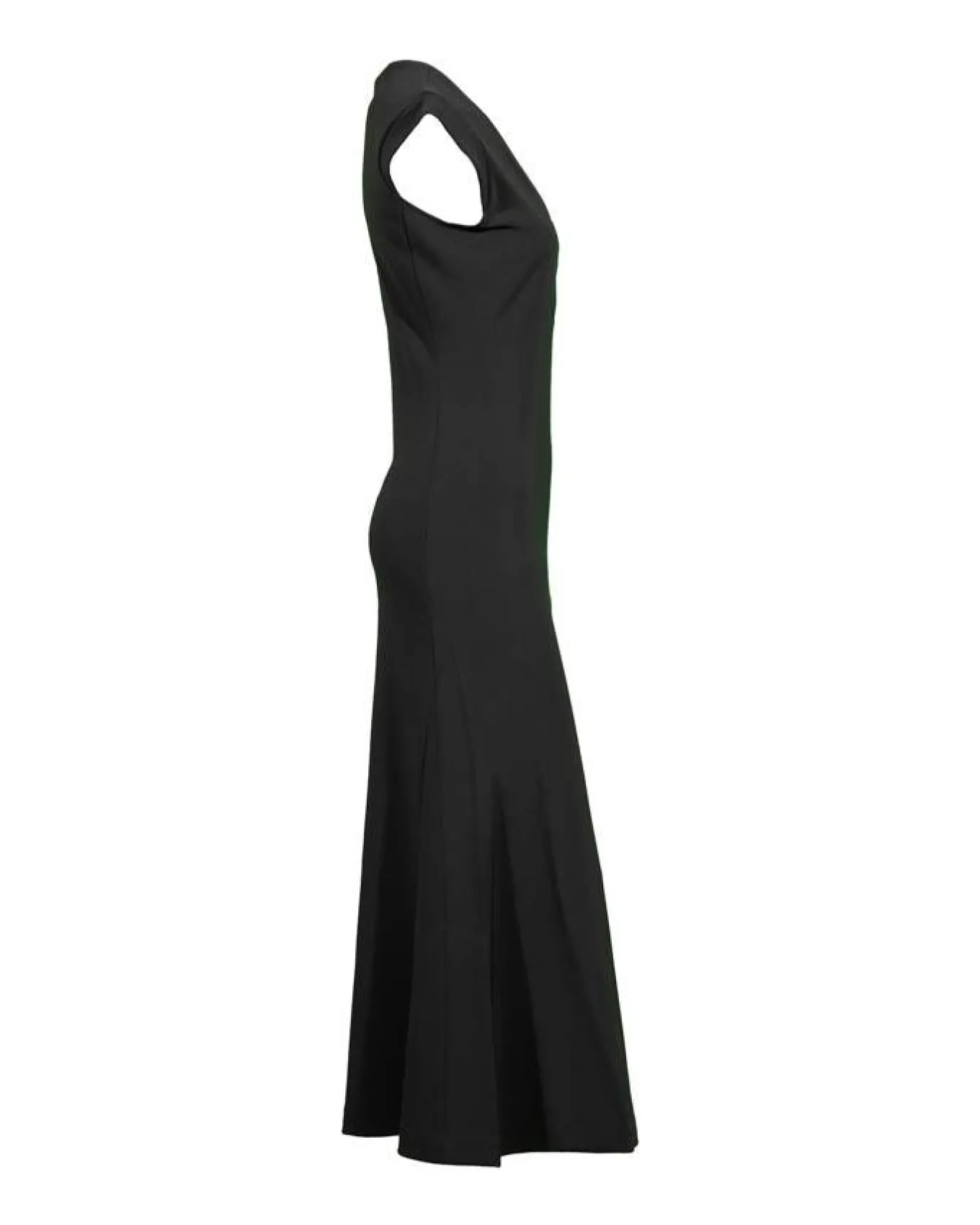 Dorothee Schumach fitted deep V-neck, cap sleeve maxi dress is styled in heavy weight jersey with slightly flared volume at the hem which creates a particularly flattering silhouette.