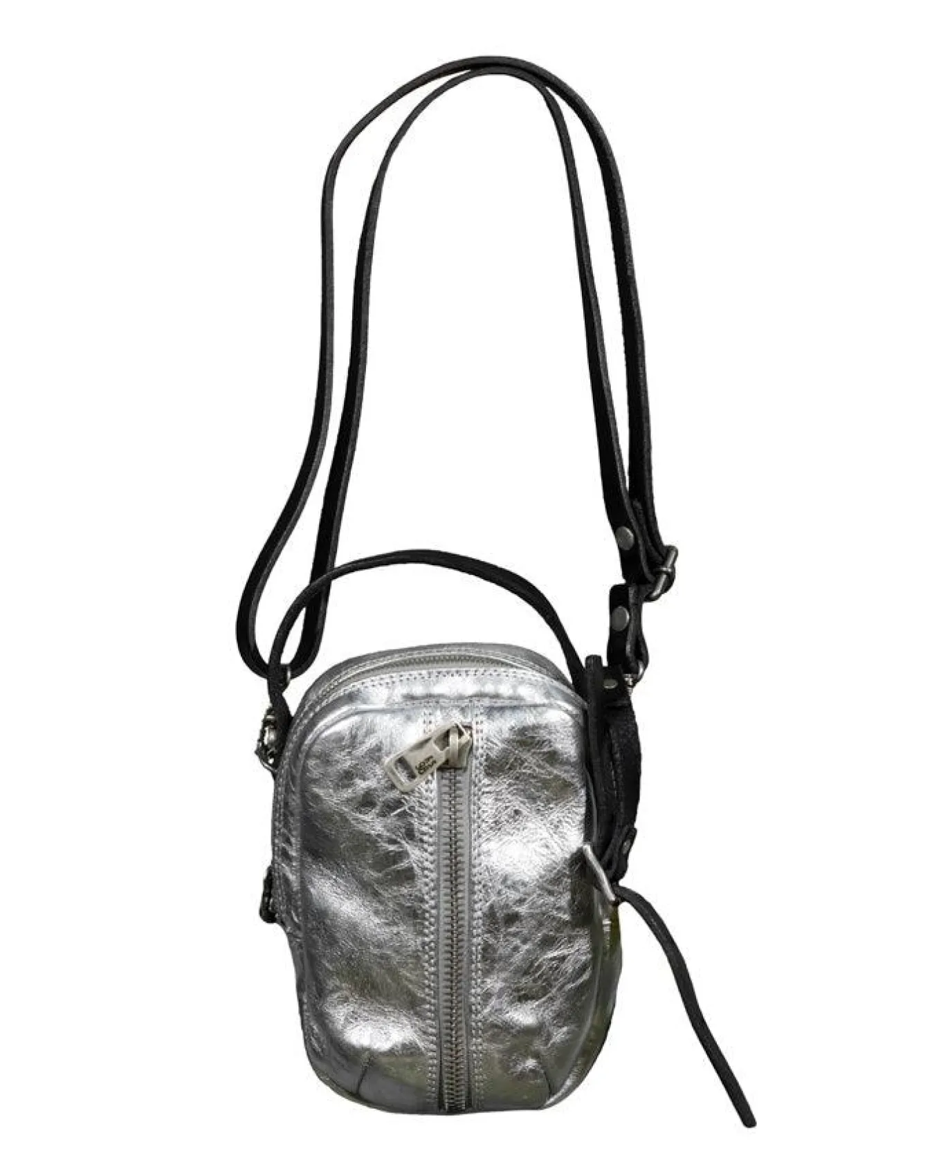 AS98 leather mini crossbody bag with zip closure, contrast adjustable crossbody strap and handle strap.