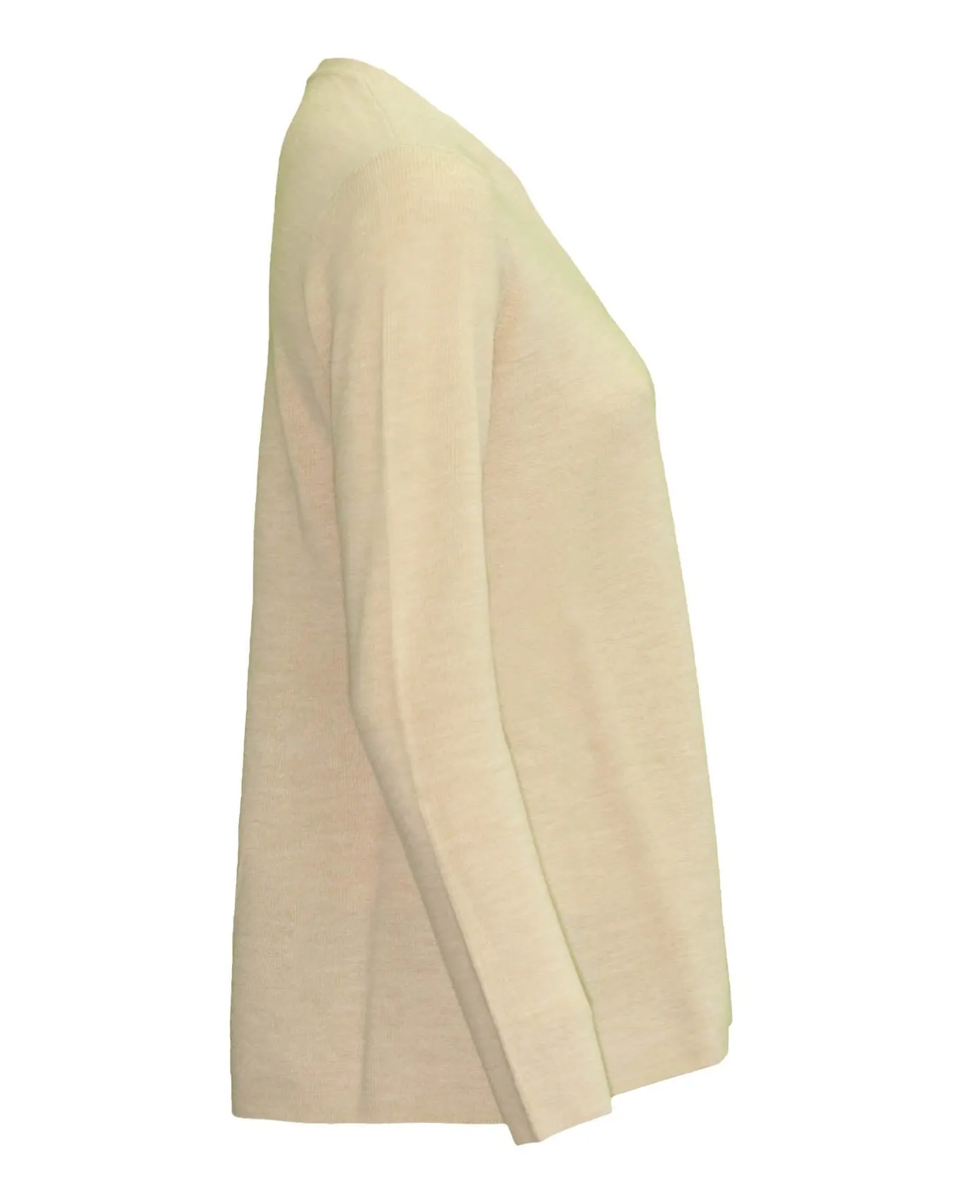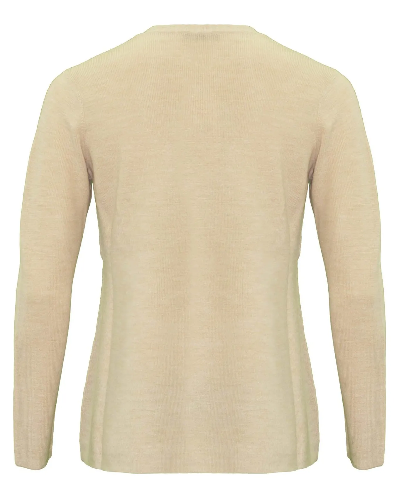 Classic long sleeve tunic length V-neck merino knit in easy fit that is shaped through waist and hips, Size S – 28″ length