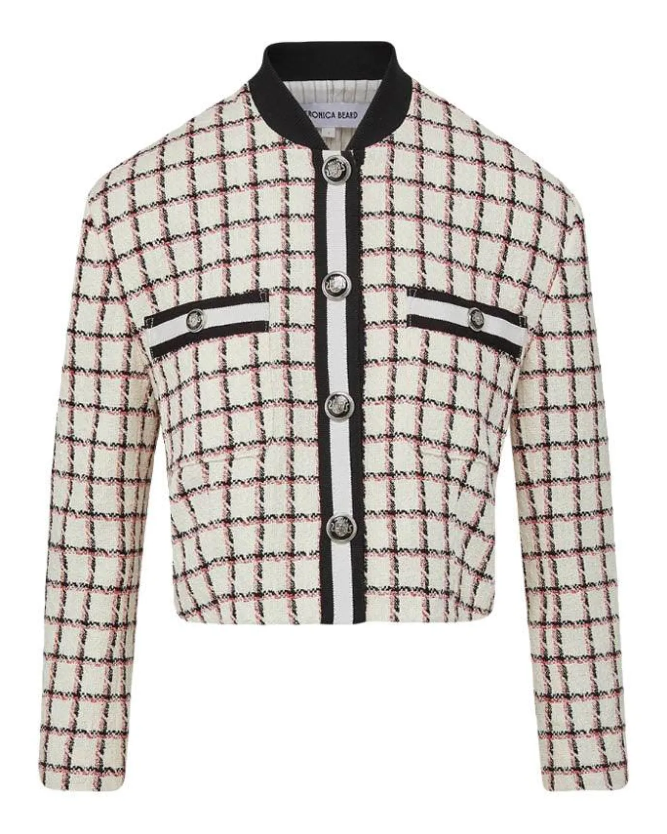 Dive into the dynamic blend of classic elegance and sporty allure with the Ellicot Graphic Tweed Jacket. This piece is a modern reinterpretation of the timeless tweed fabric, transformed into a bomber-style jacket that exudes both sophistication and edge. Adorned with crest buttons and adorned with graphic checks featuring subtle shots of red, it presents a bold visual statement.