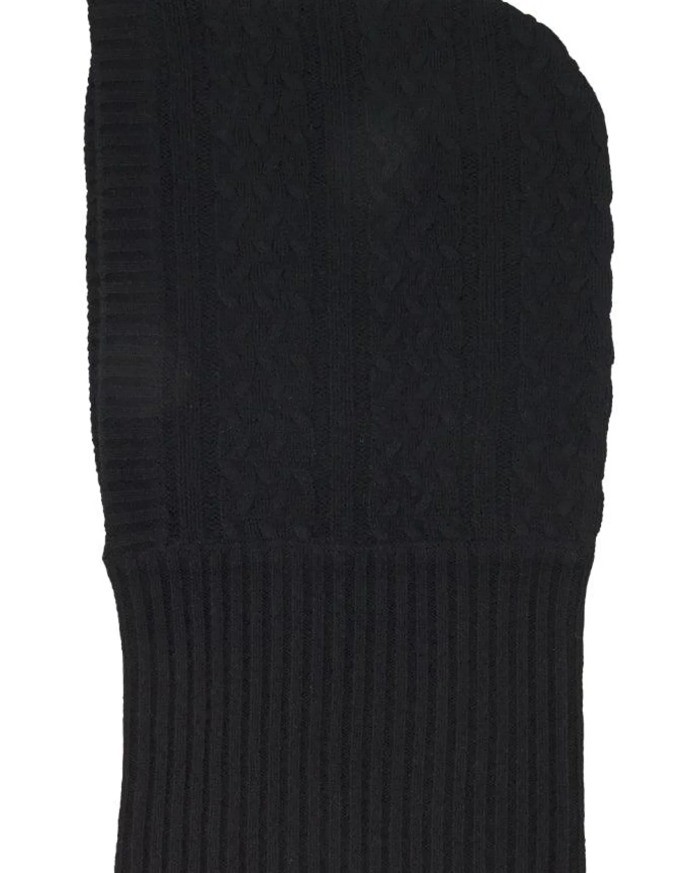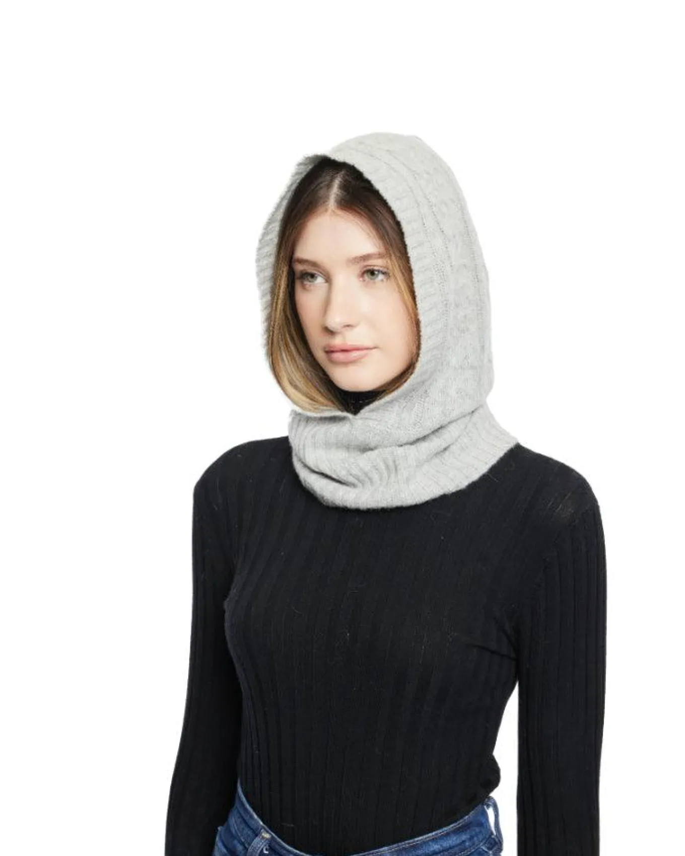 HiSO snood style cashmere blend hood with cable and rib knit detail.