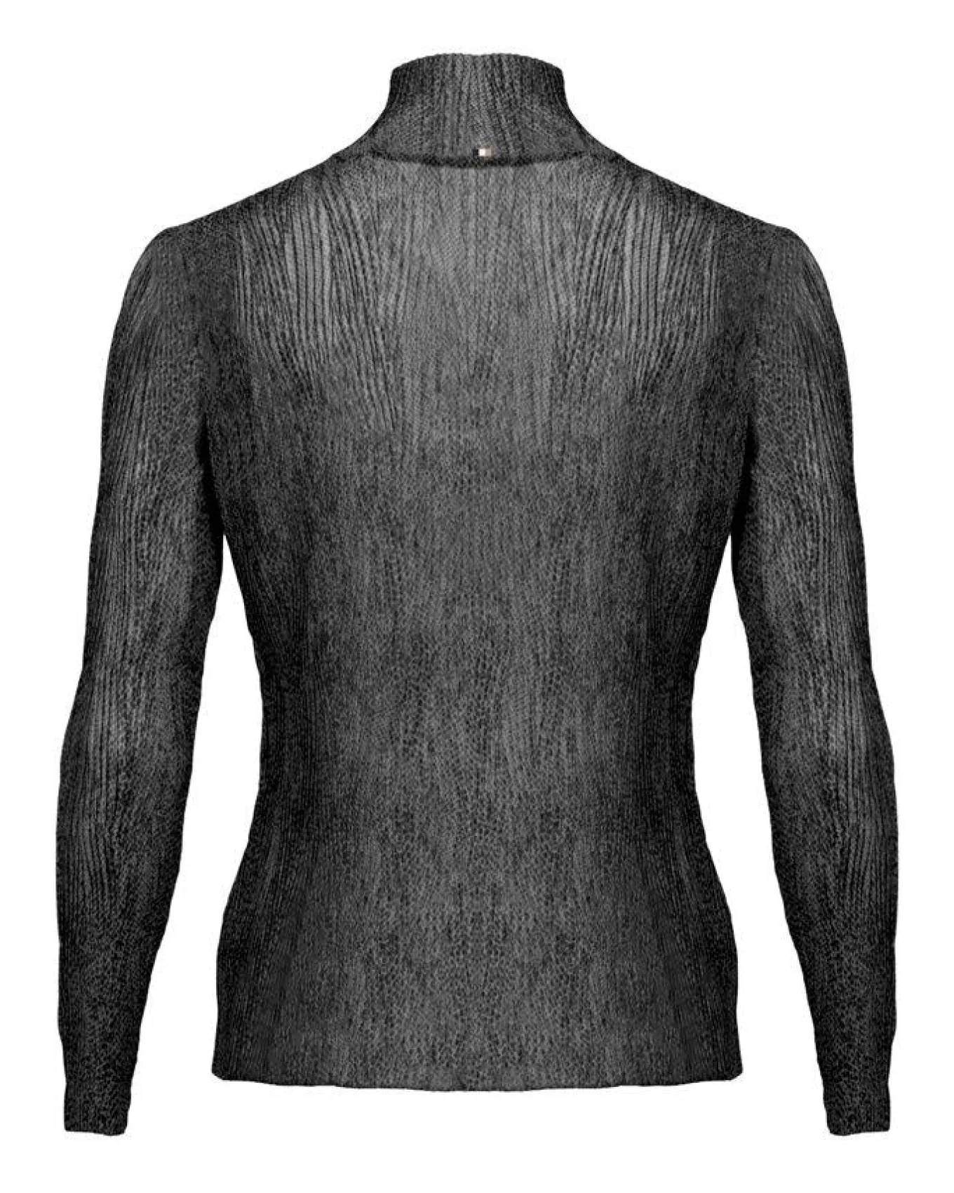 Hugo Boss feminine long sleeve turtleneck top in alightweight tulle with plisse pleats and raw edges.