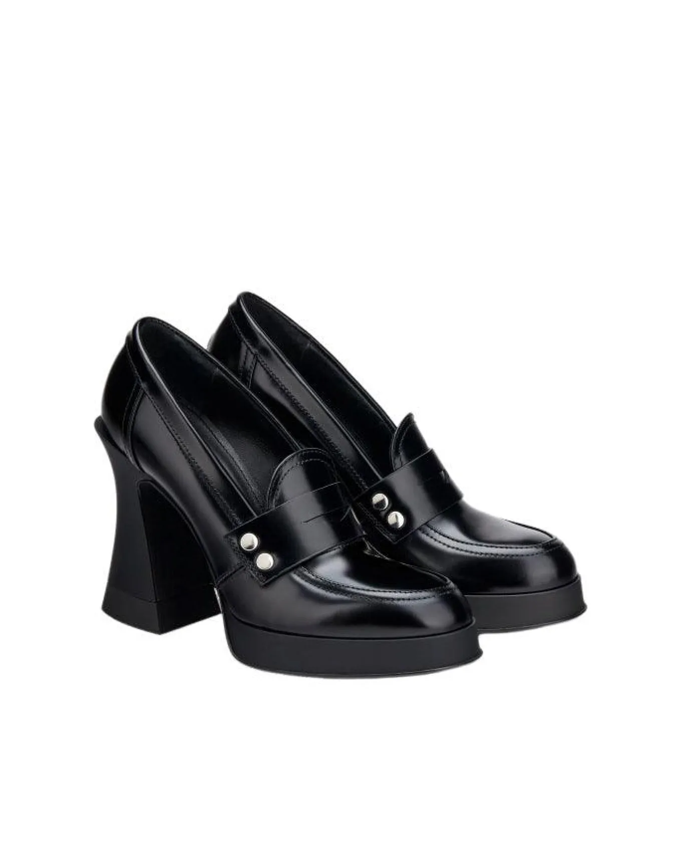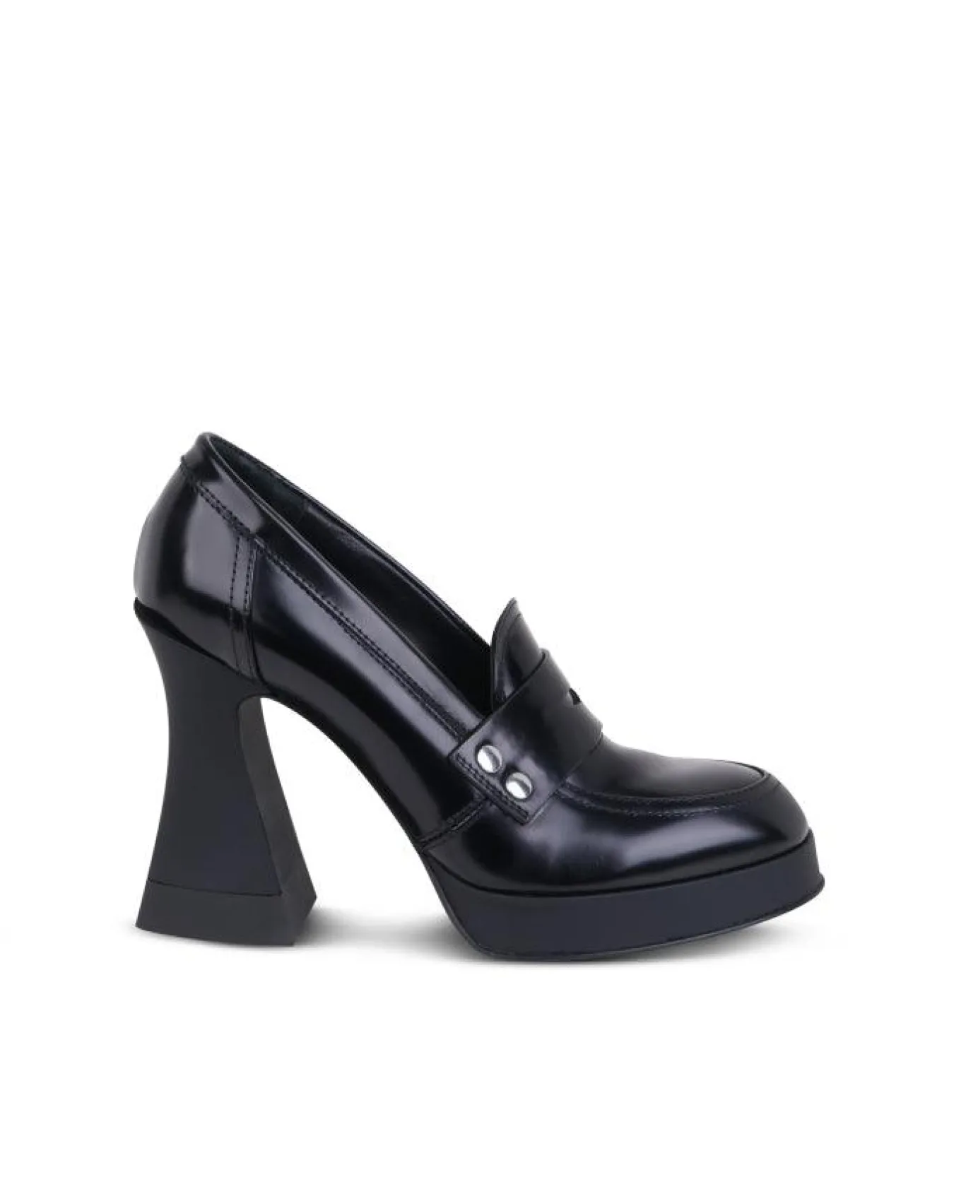 British inspired calf leather platform slip on shoe with designer 11 cm heel and 2 cm front platform, TPU sole