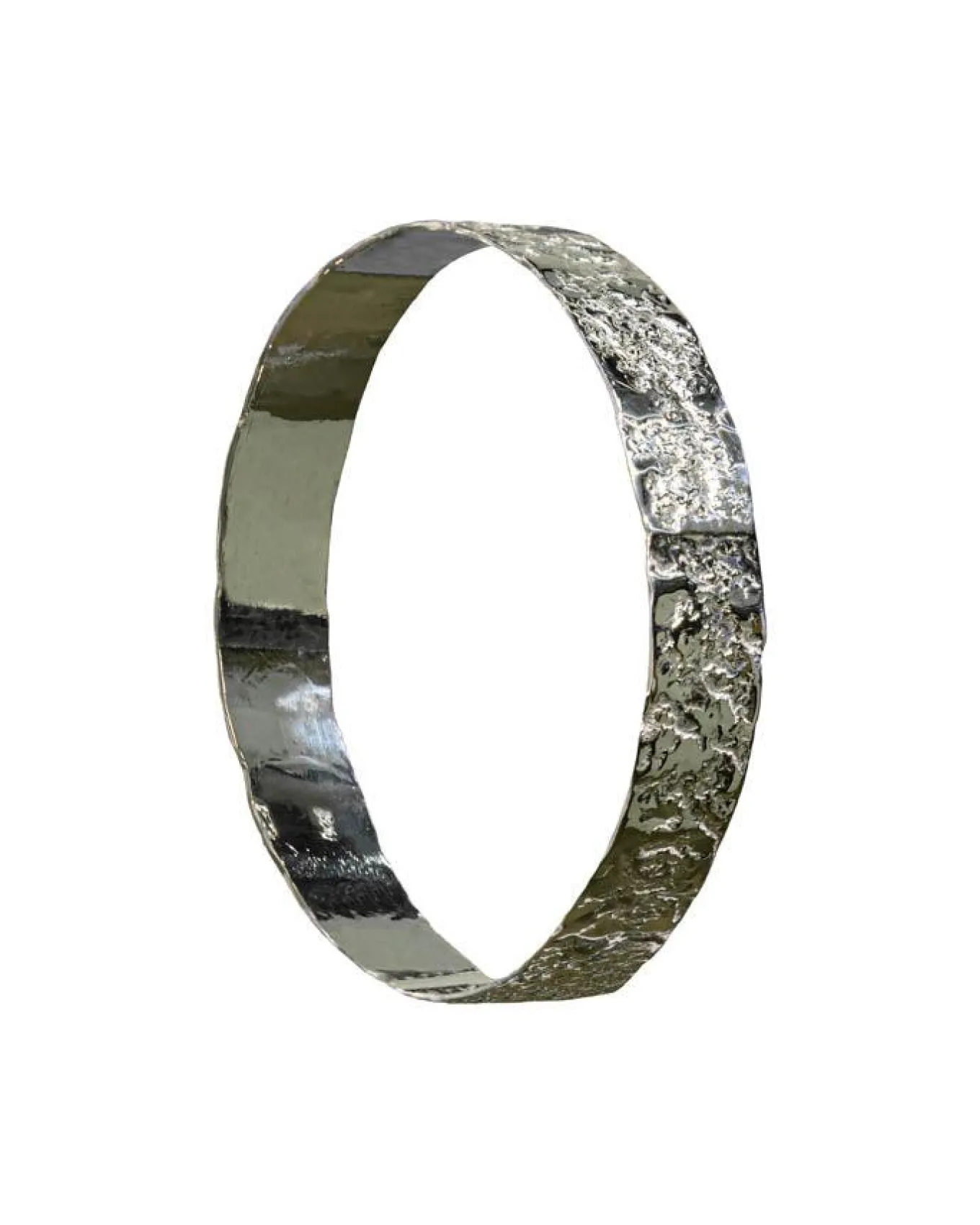 Karyn Chopik classic antiquity high polish heavily textured sterling silver bangle, 10mm wide cuff.