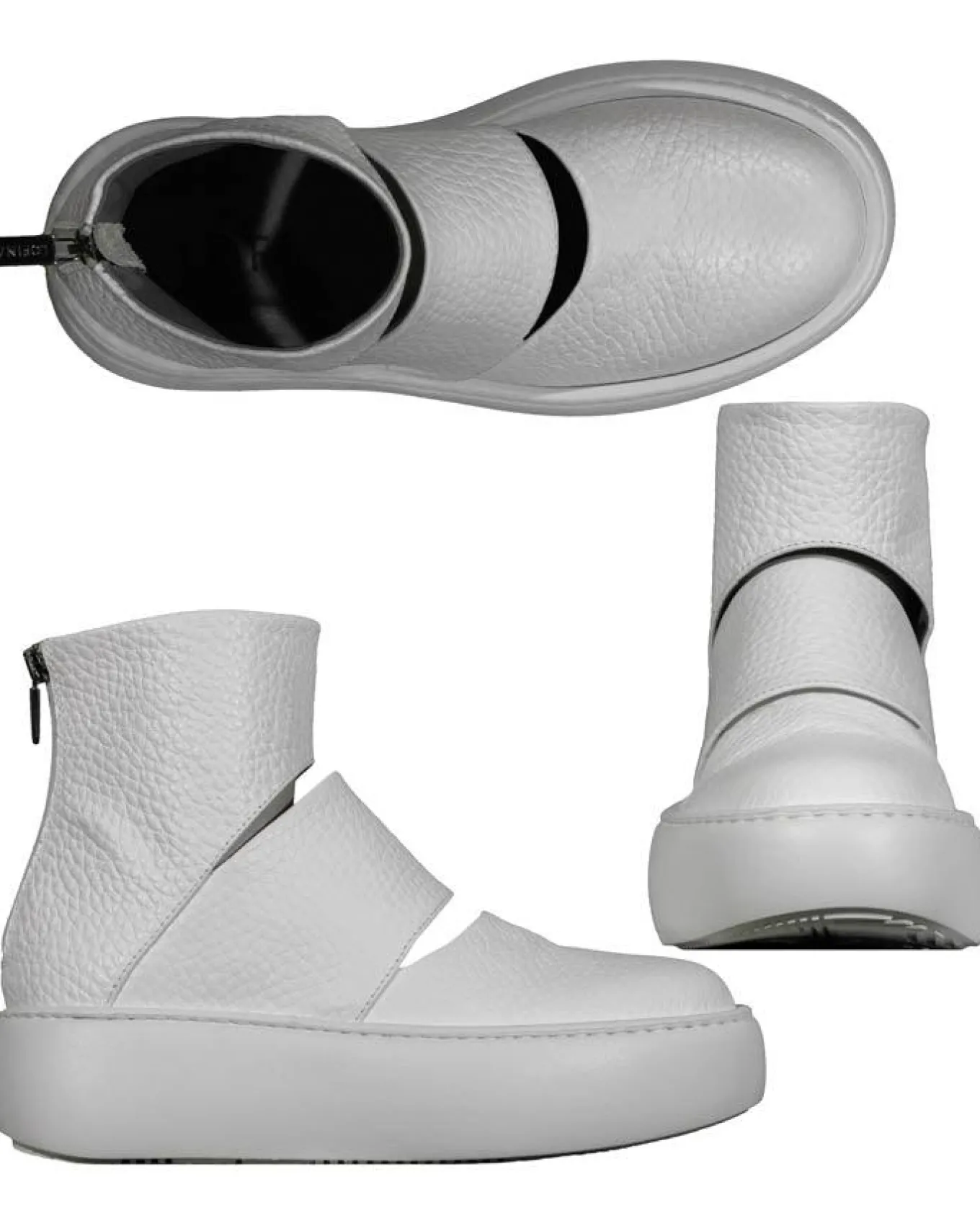 Lofina gorgeous open ankle boot in high quality calfskin features cutouts, back zippers, platform sole, Use with bare feet or with a nice sock inside for a versatile look.