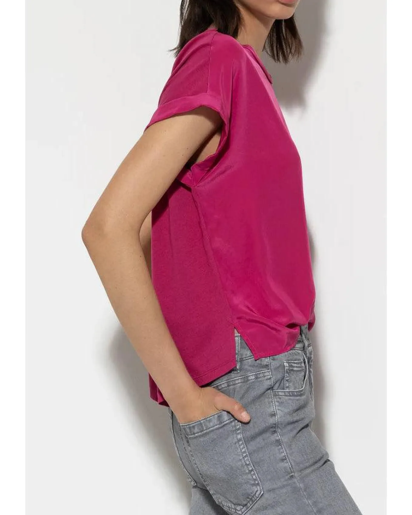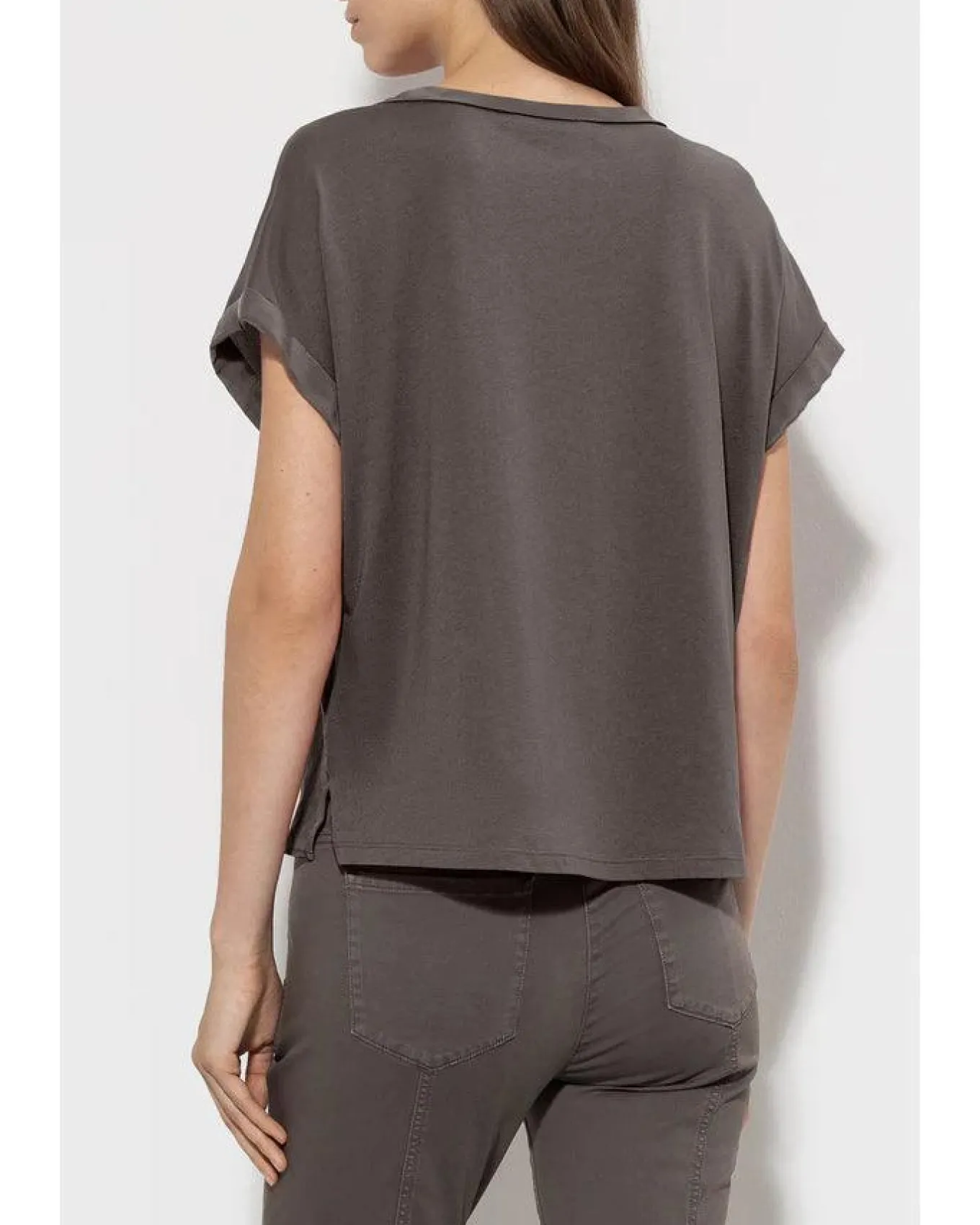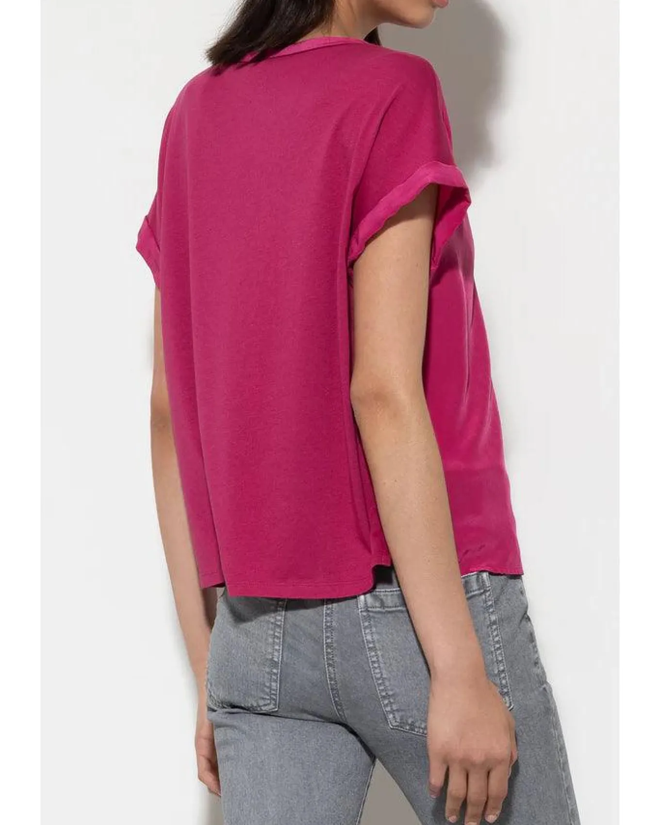 Luisa Cerano casual T-shirt in a two-piece design with dropped shoulders and narrow trims at the cuffs and collar. The front is made from light, flowing techno silk and the back is made from soft jersey.