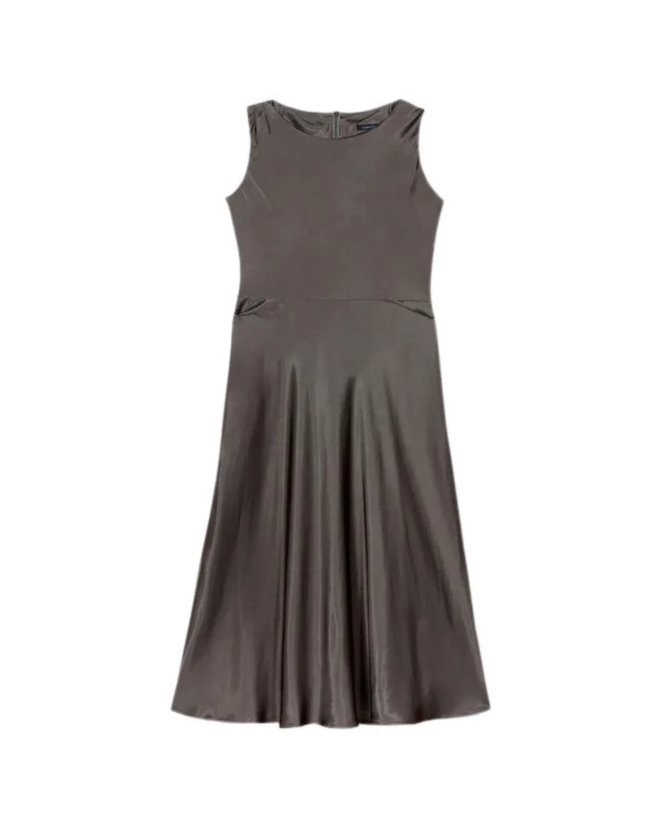 Luisa Cerano luxurious, finely woven viscose satin sleeveless Fit & Flare dress with round neck and concealed back zip closure.