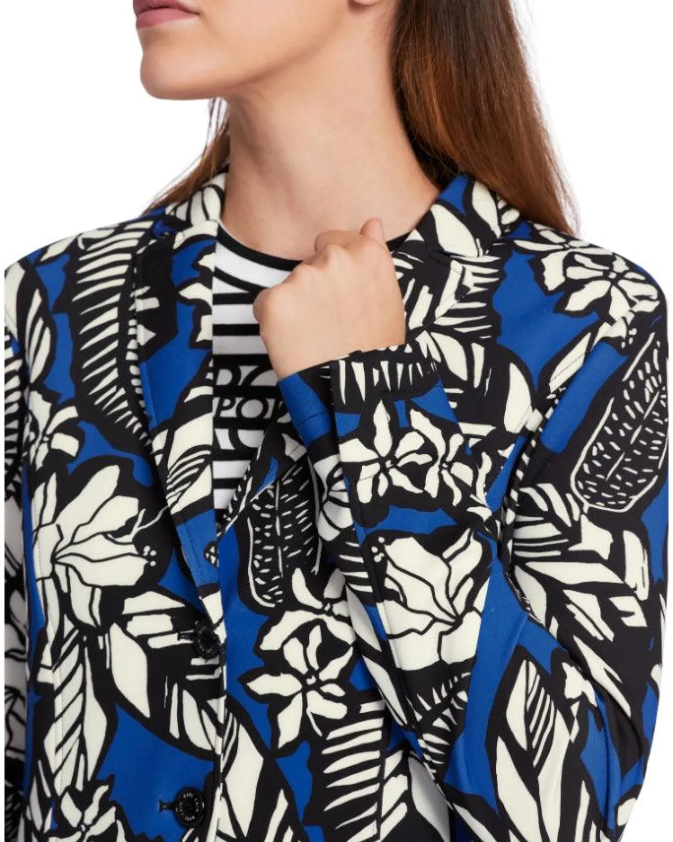 Marc Cain soft jersey floral print blazer with shaping seams, lapel has classic drape, single breast two button fastening, partial mesh lining ensures good fit, patch pockets.