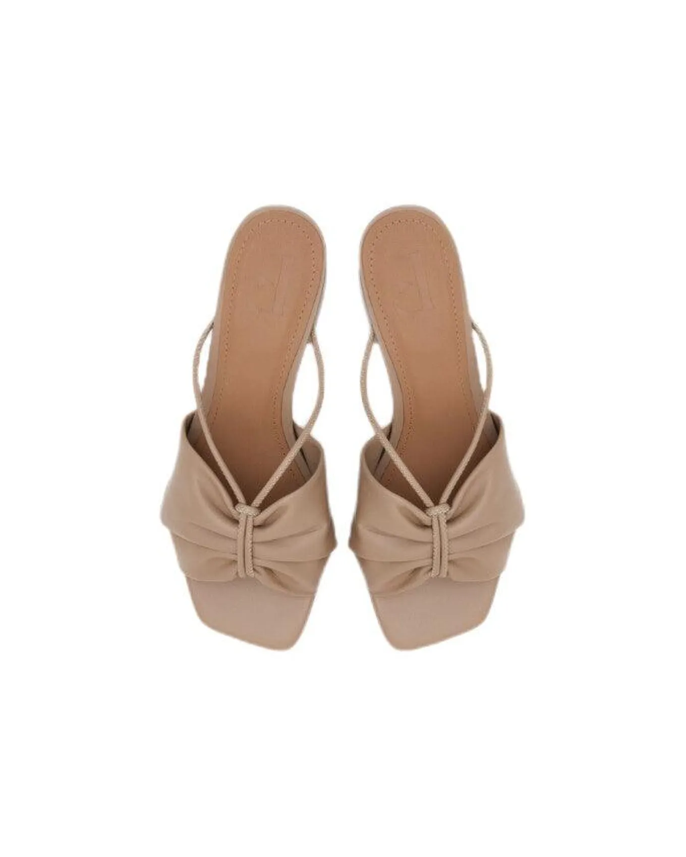 Goat leather ruched open toe slip on sandal with block 55 mm heel