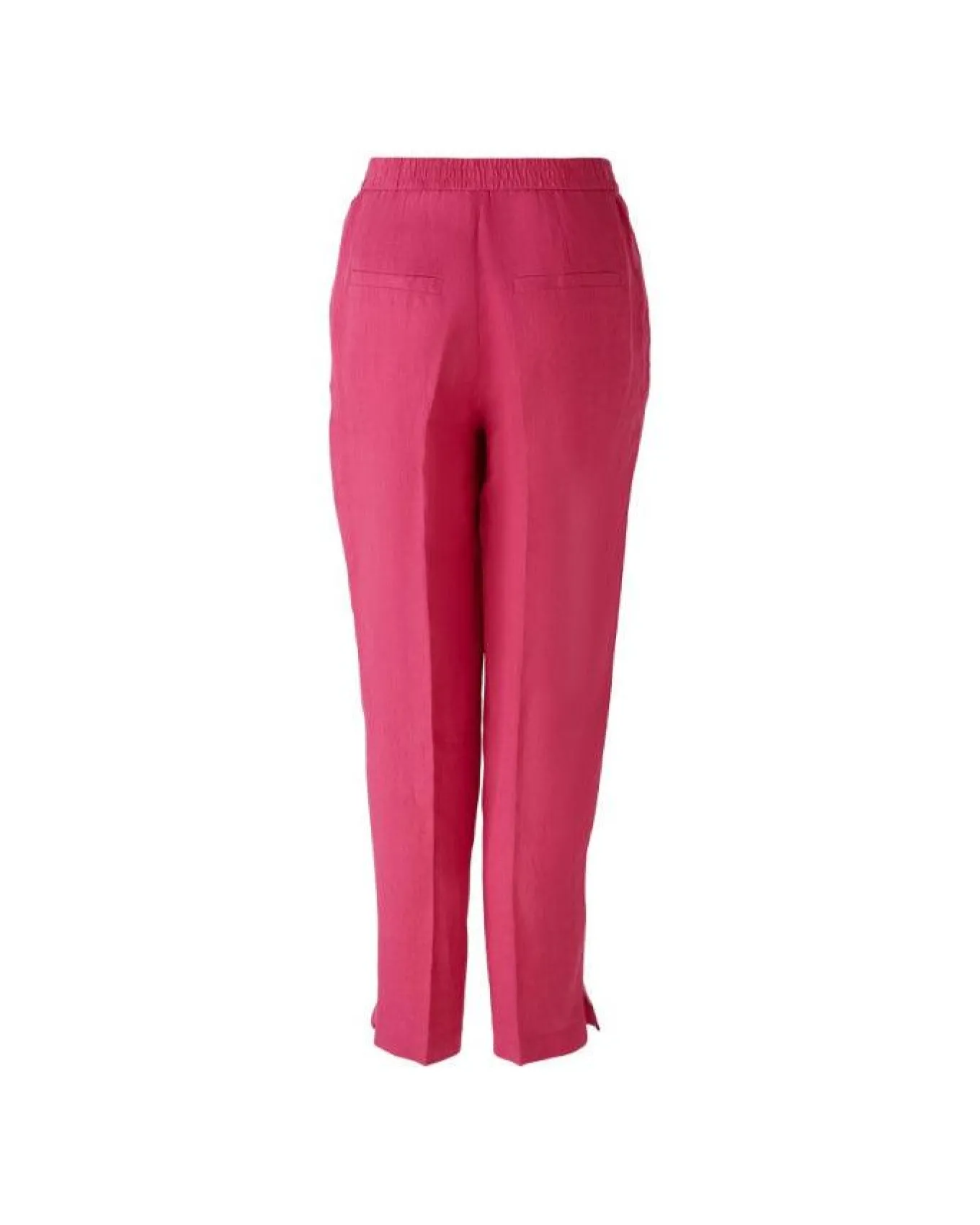 Oui linen mid waist ankle pant with front pockets, back welt pockets, elastic back waist band, button and zip closure andside slits on hem, Length 72cm.