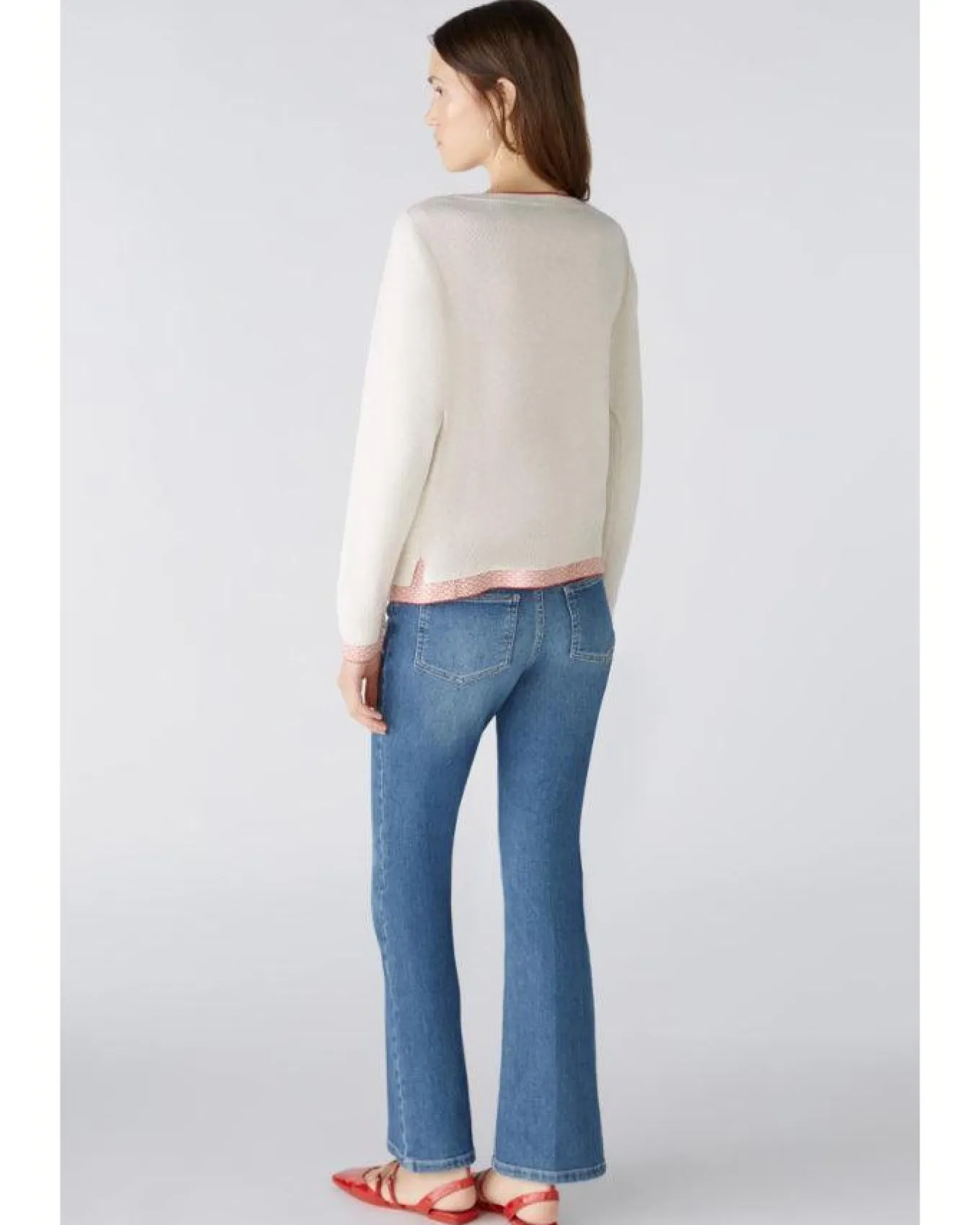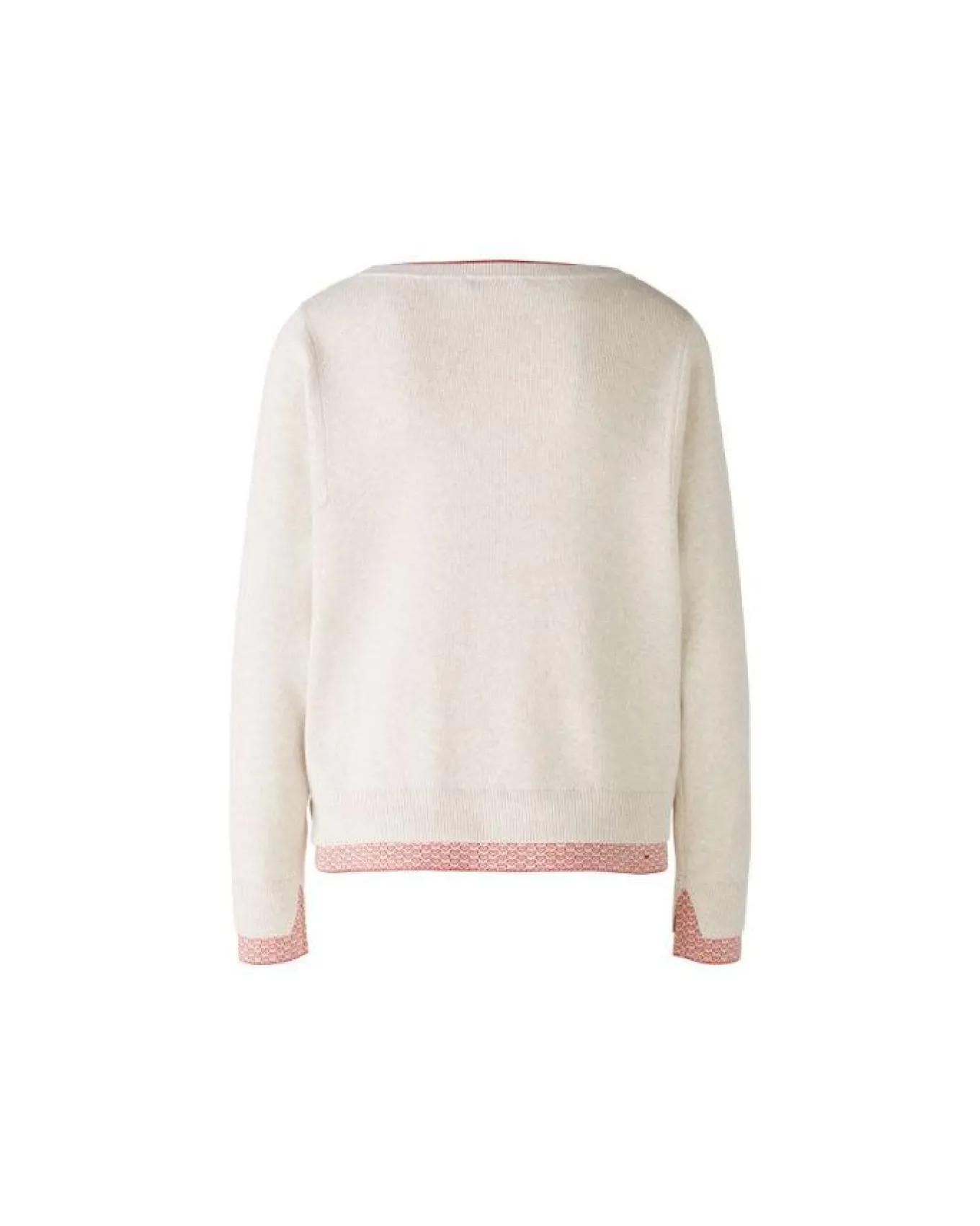 Oui cotton knit round neck pullover with contrast detail around neck and mini heart print on hem.