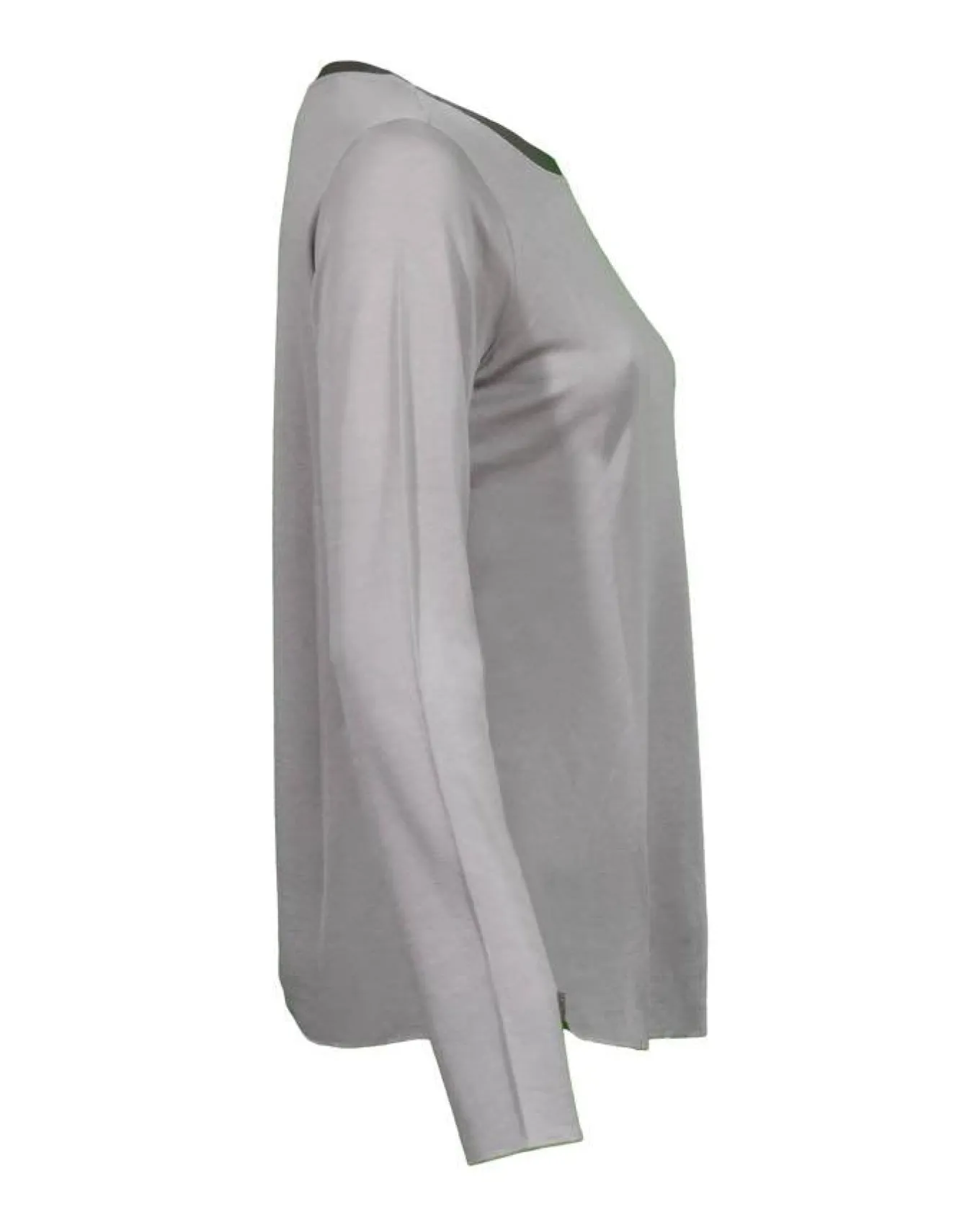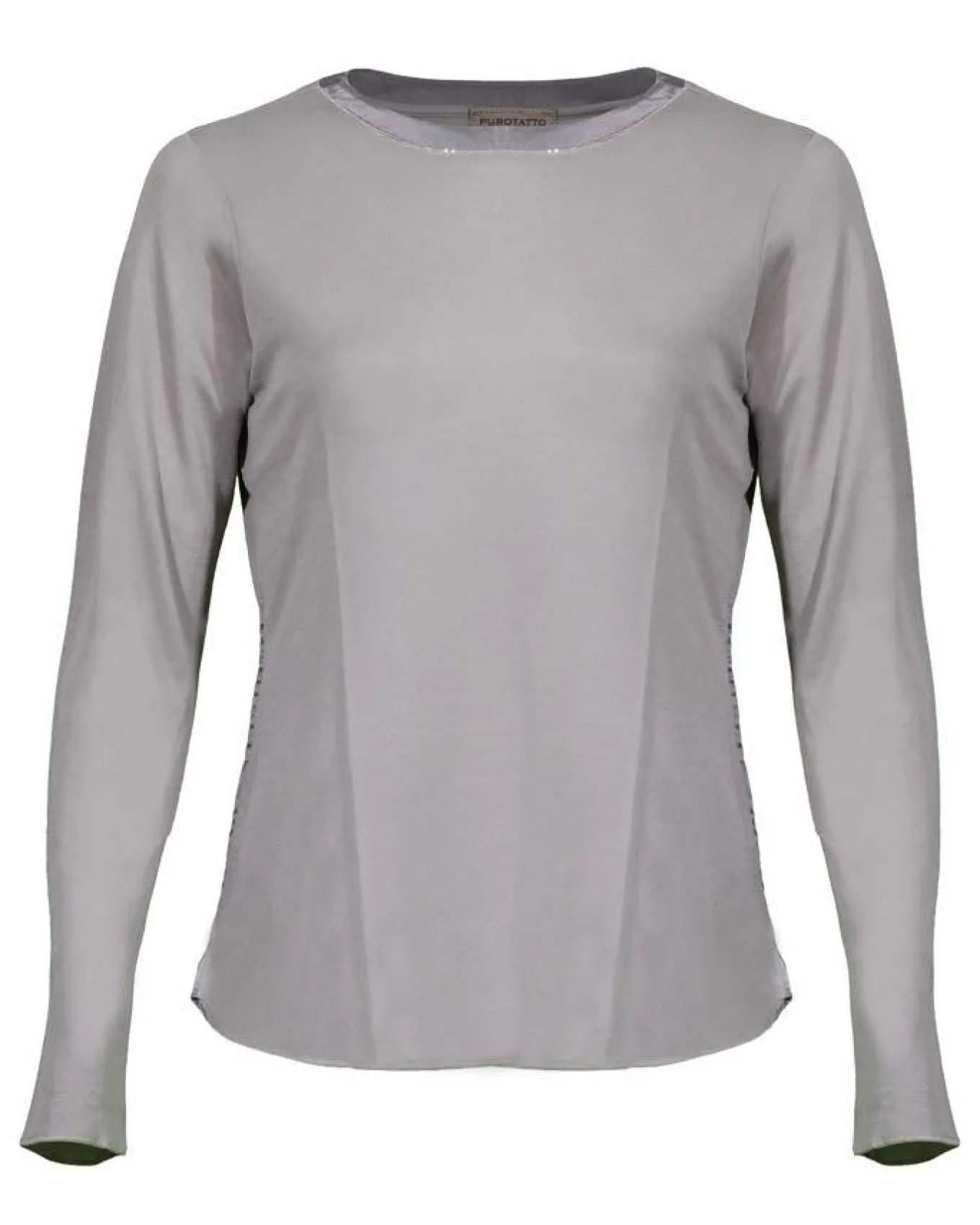 Purotatto lightweight fine modal cashmere blend pullover with long sleeves and round neck with satin trim detail.