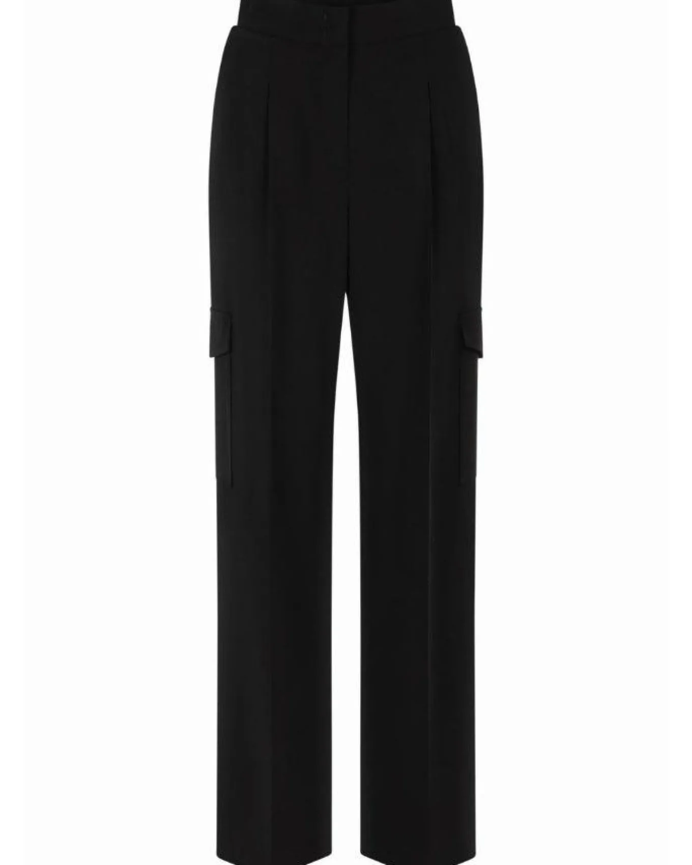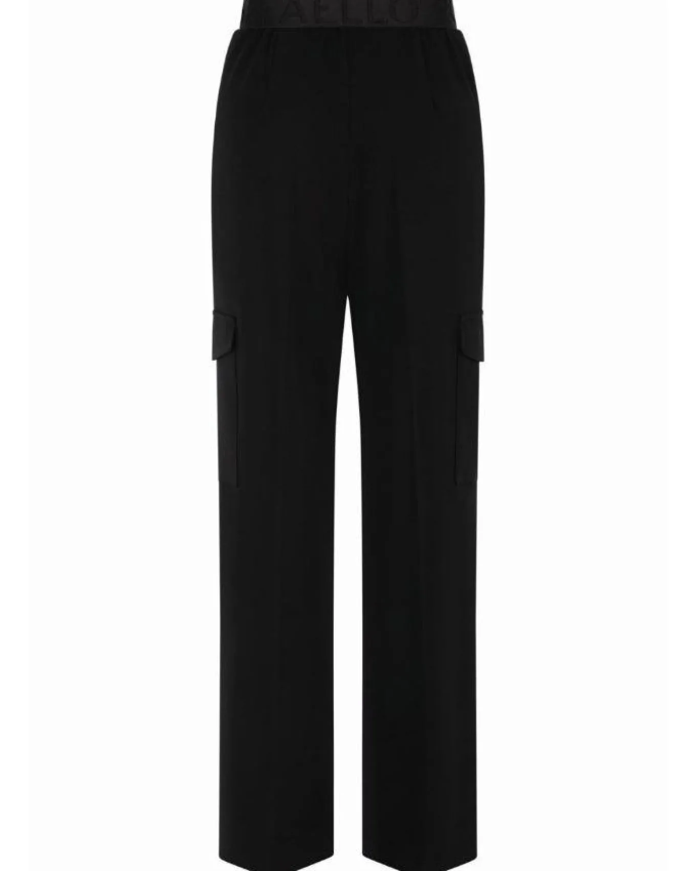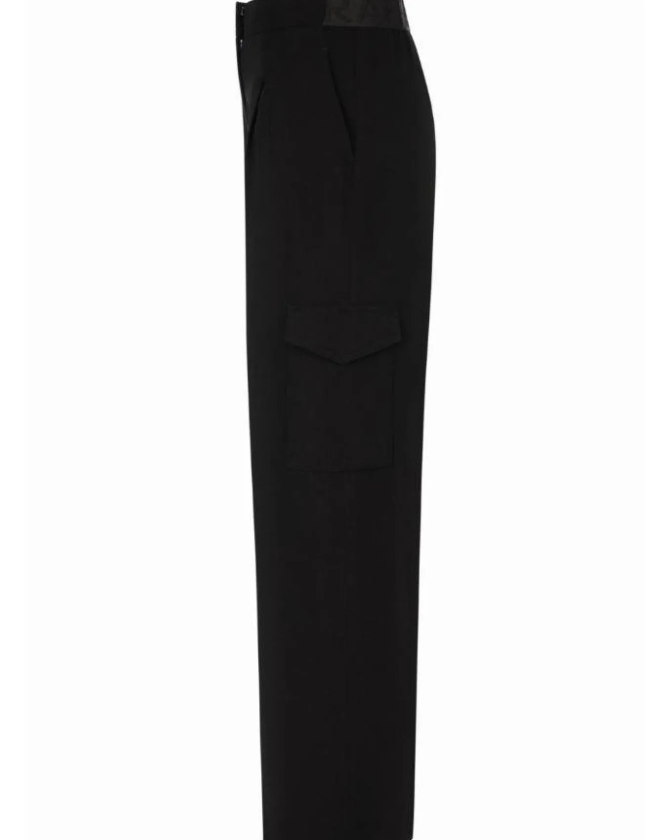 Raffaello Rossi stretchy techno wide leg pants with side slant pockets, cargo pockets, hook and zip closure with embossed back elastic band, full length.
