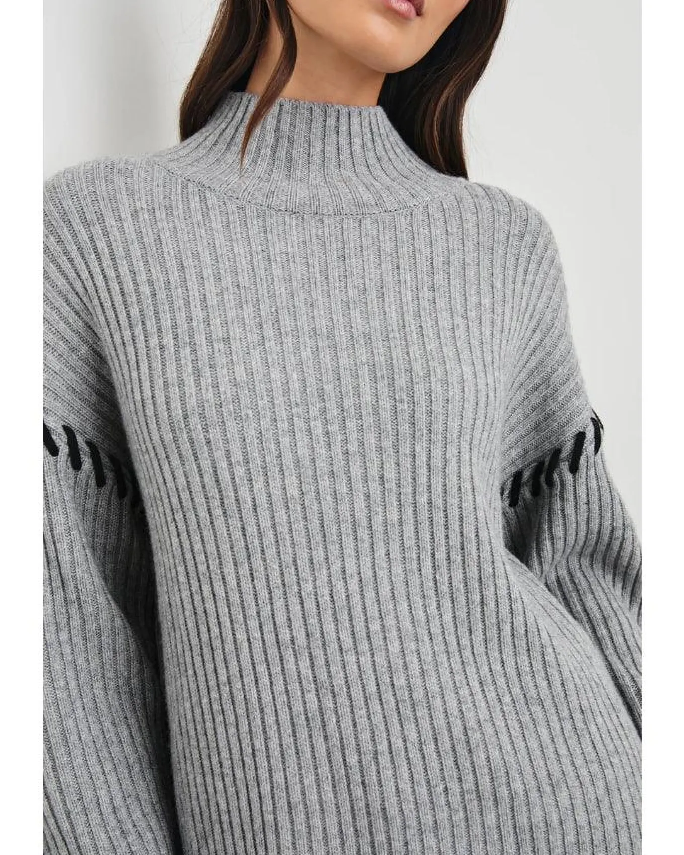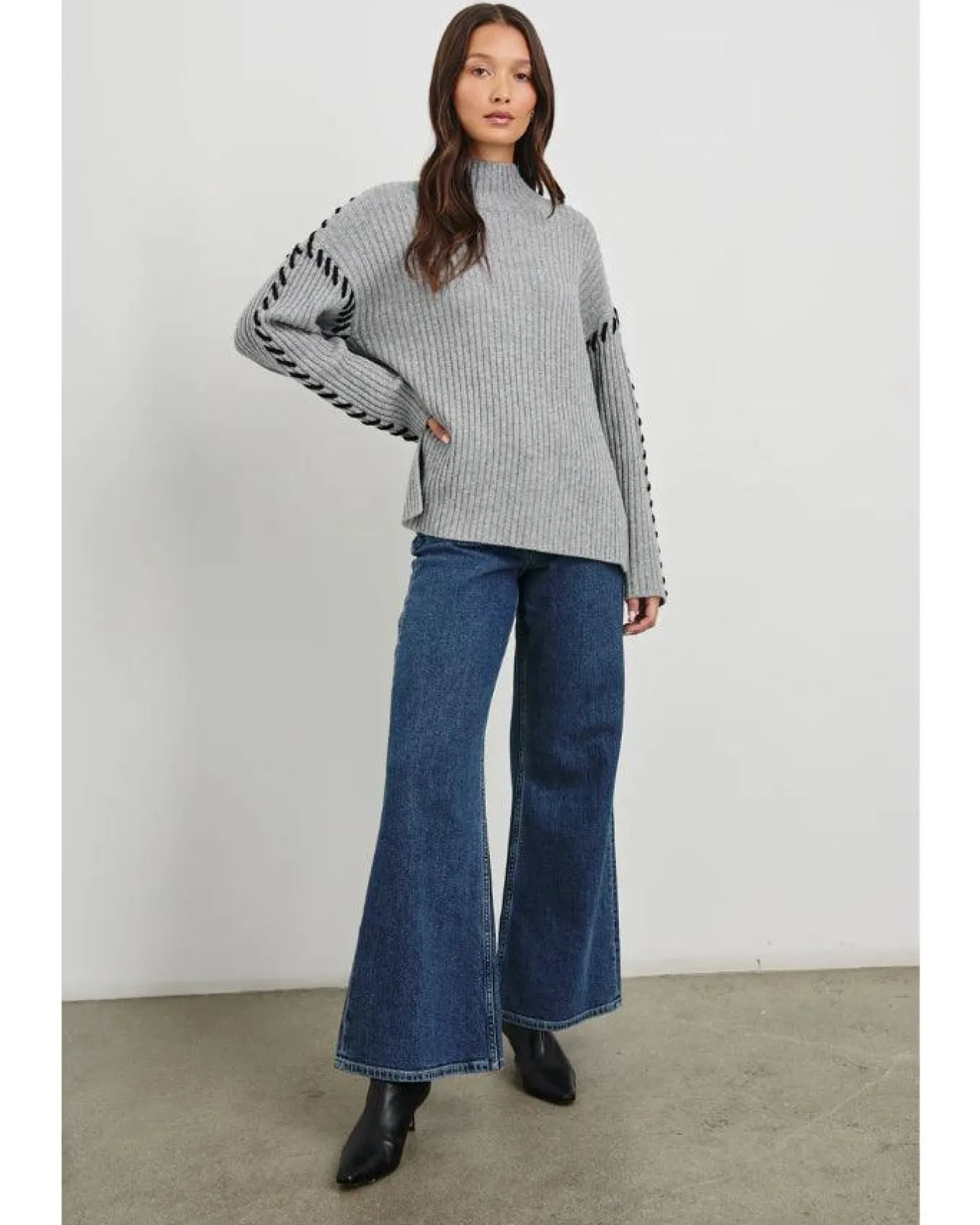 Rails wool cashmere blend ribbed knit turtleneck sweater with drop shoulders, contrast rib stitch details and side slits, Size S – Length 23 1/2″.