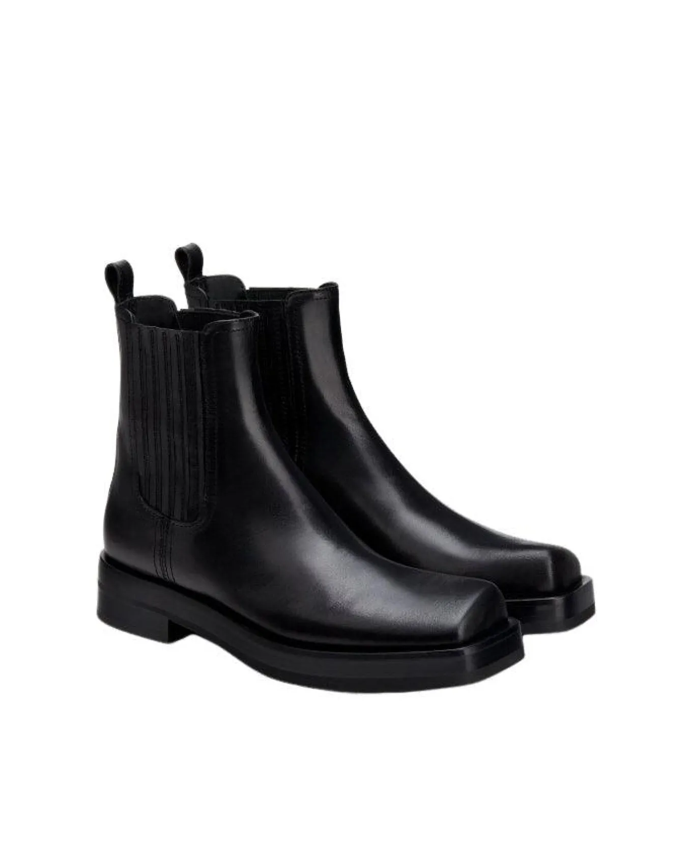 Western wear inspired leather ankle boot with square toe, elastic side gussets and inside zip closure, tighter fit, Leather sole 2 cm at the front, 3.5 cm at the heel.