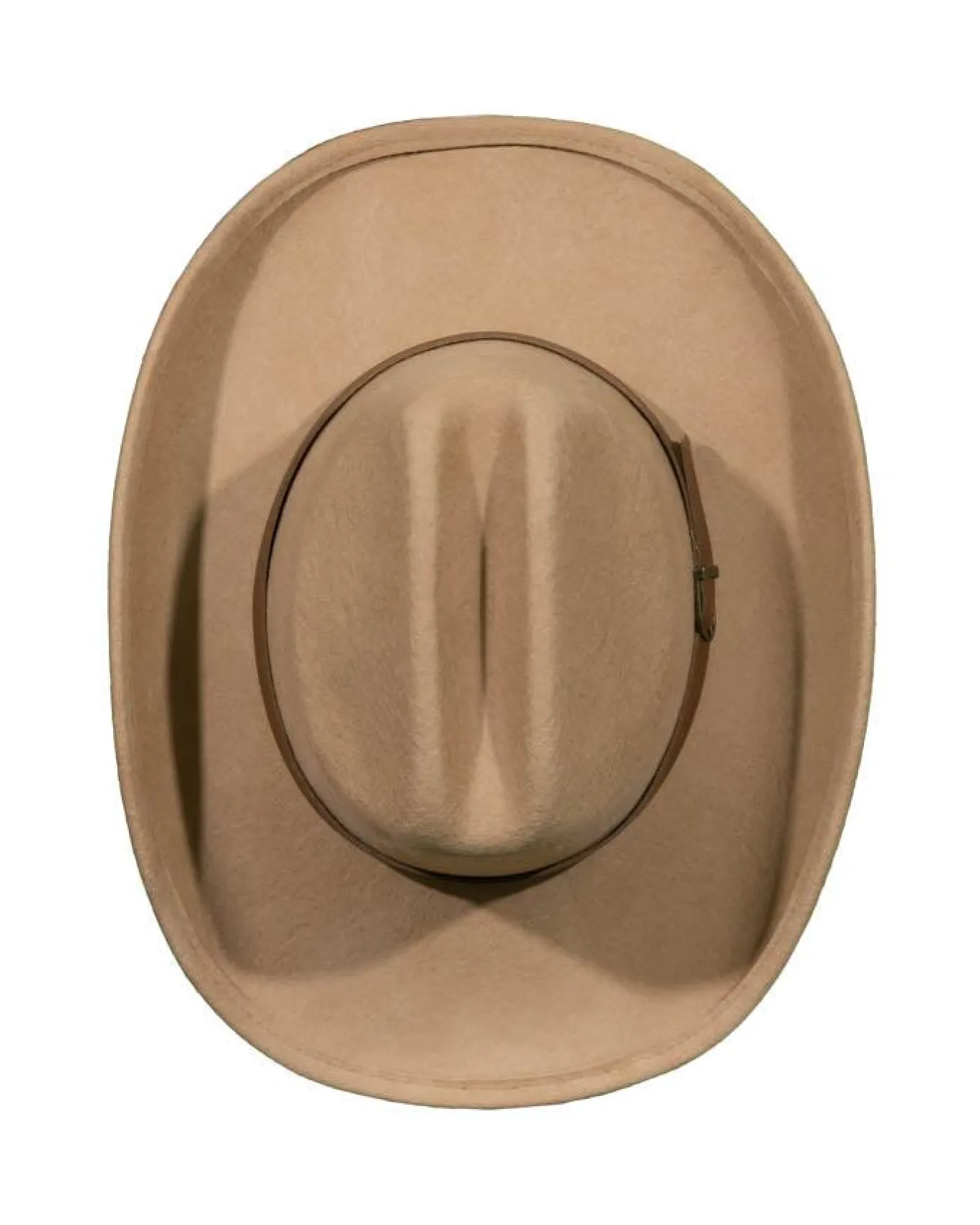 Shine Hats western style felt wool cowboy hat with hatband and adjustable sweat band around head, strap around, Size 57cm