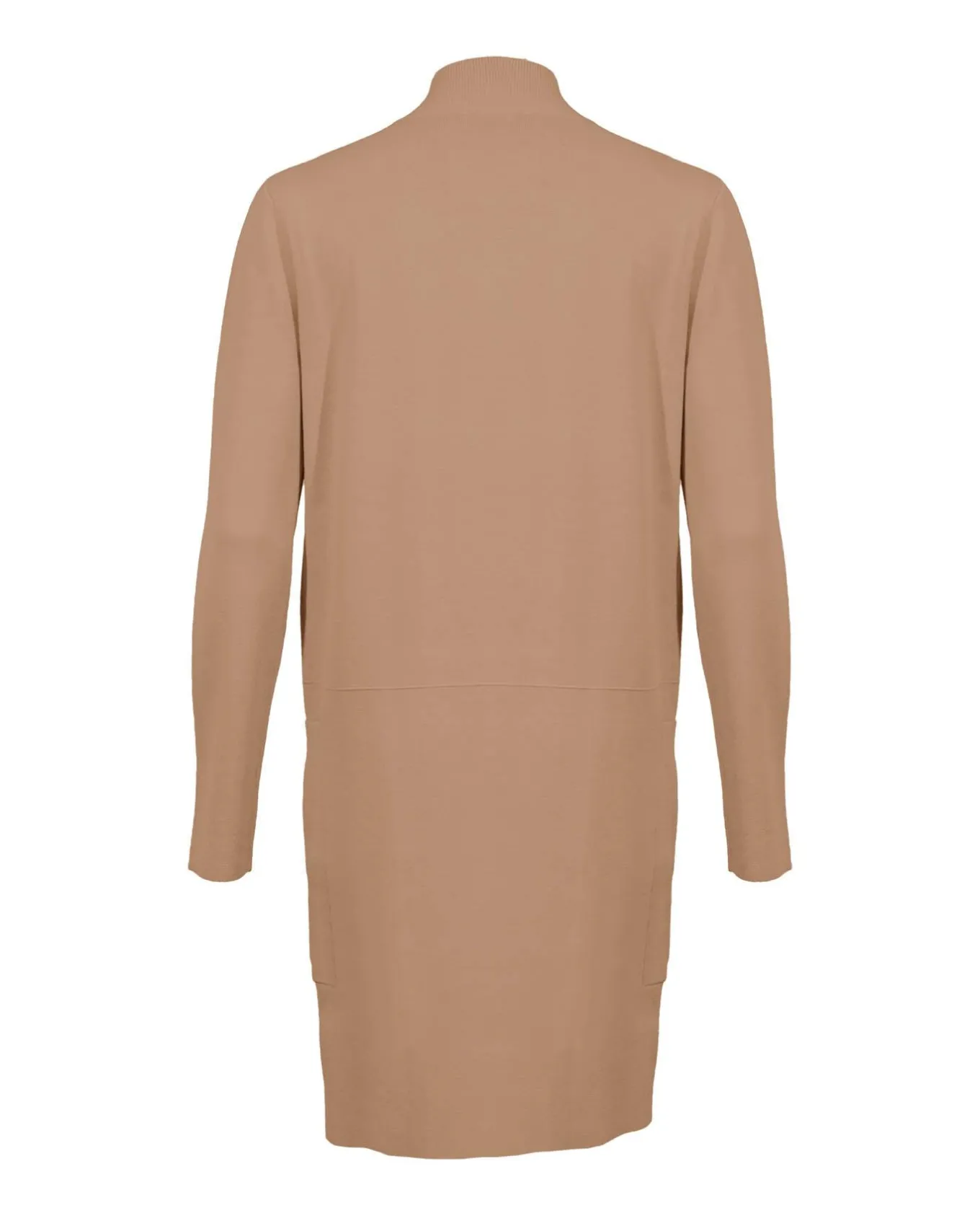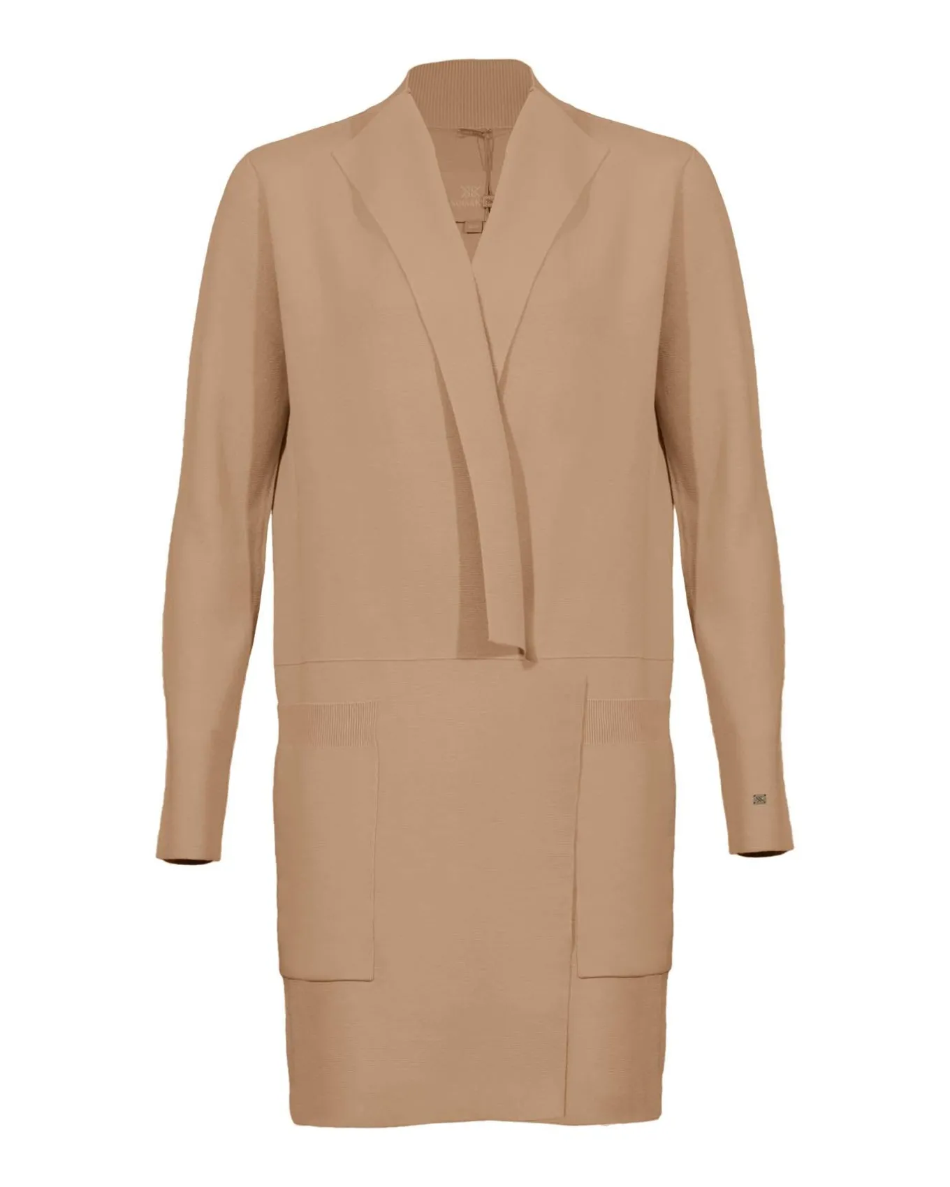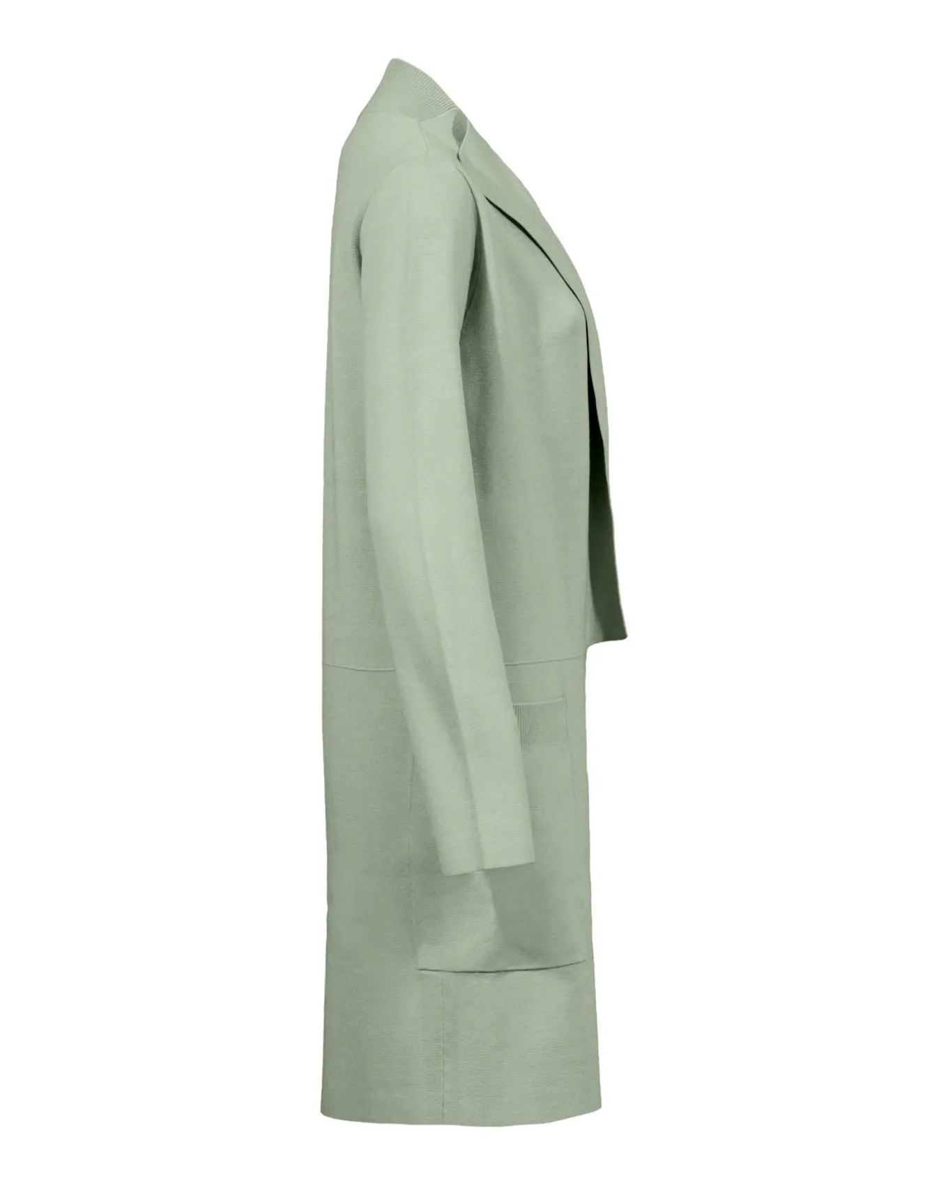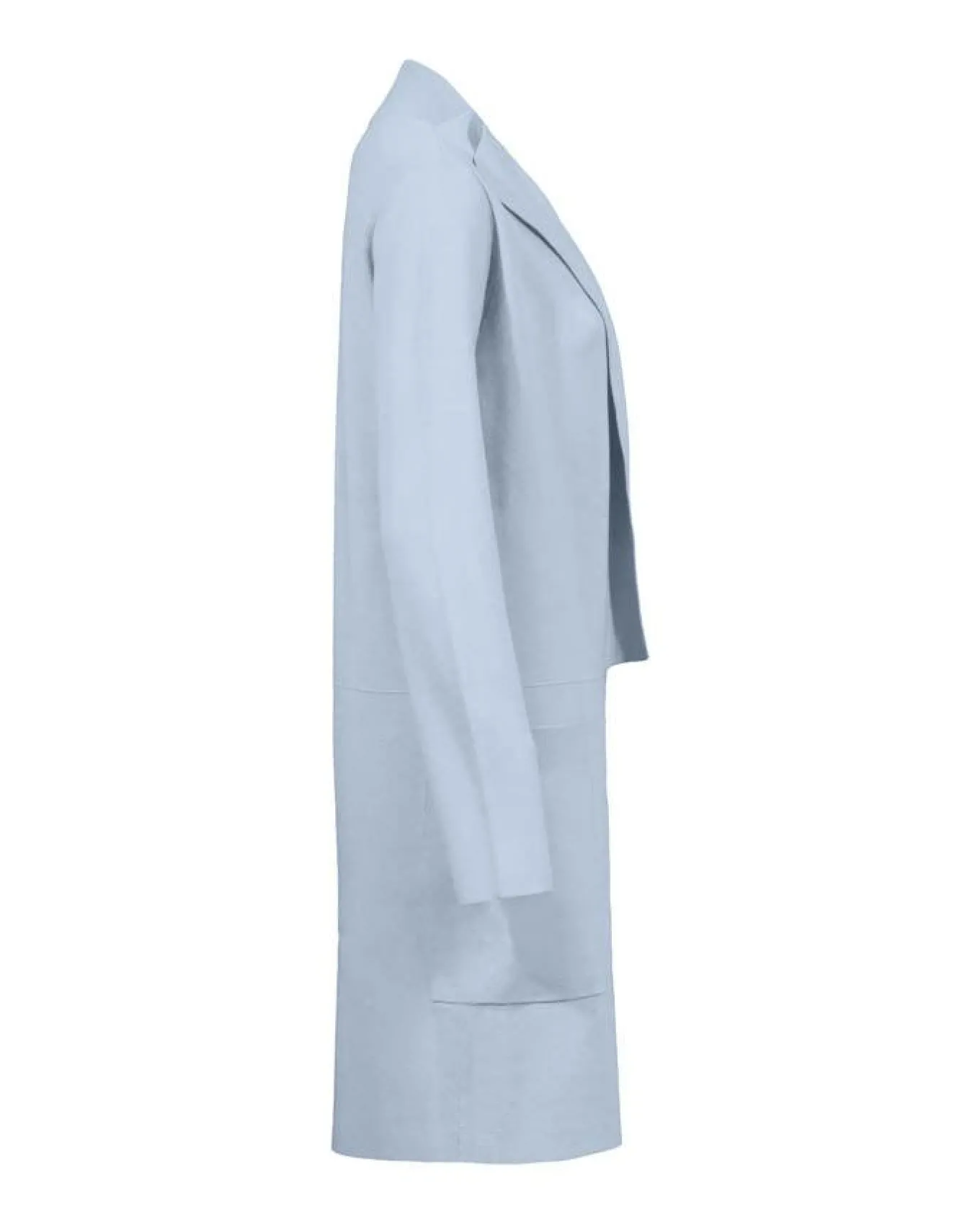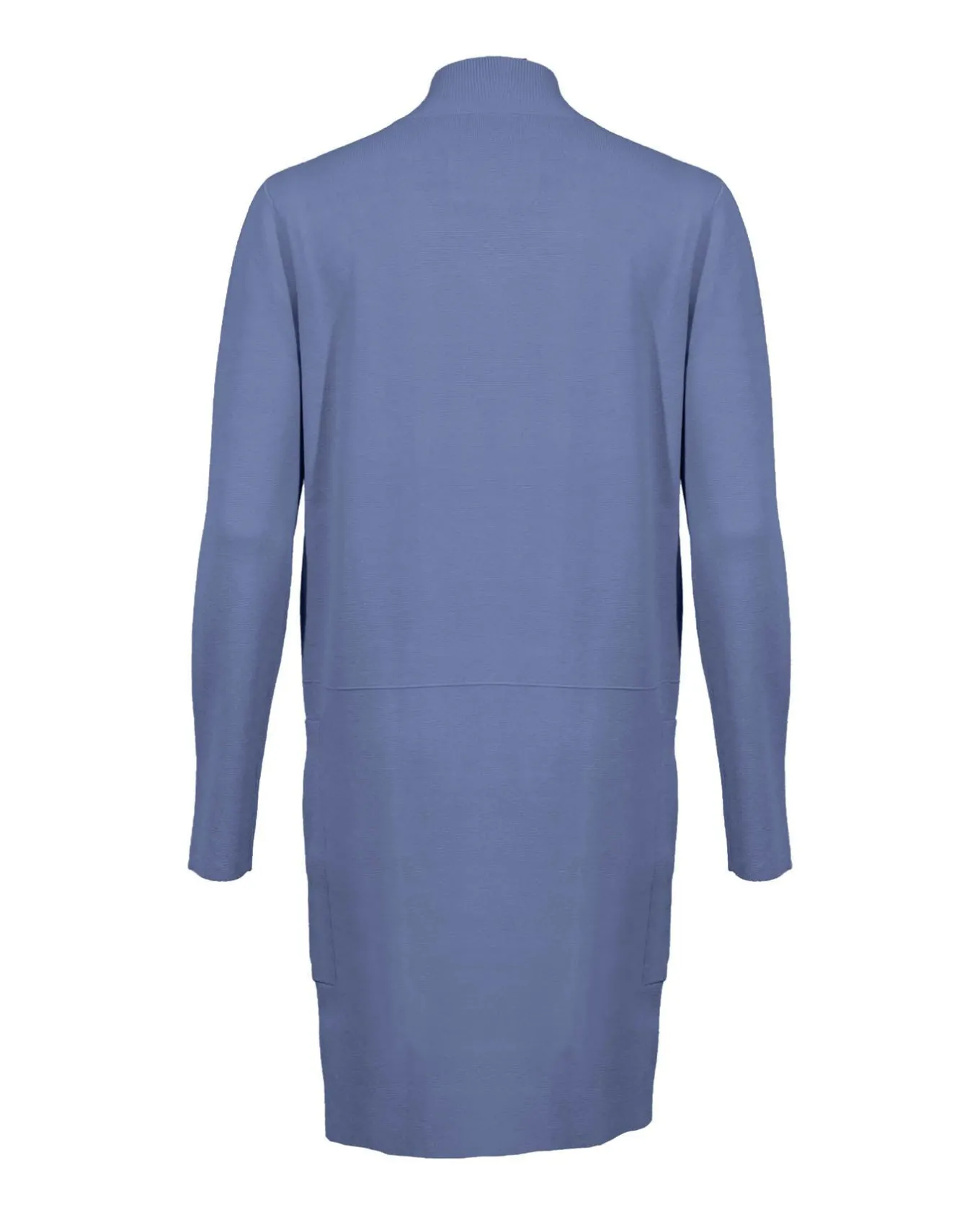 Soia & Kyo straight fit above the knee length coatigan with lapel slits, ribbed back collar and patch pockets with ribbed opening edge, Size XS – 34″ Length