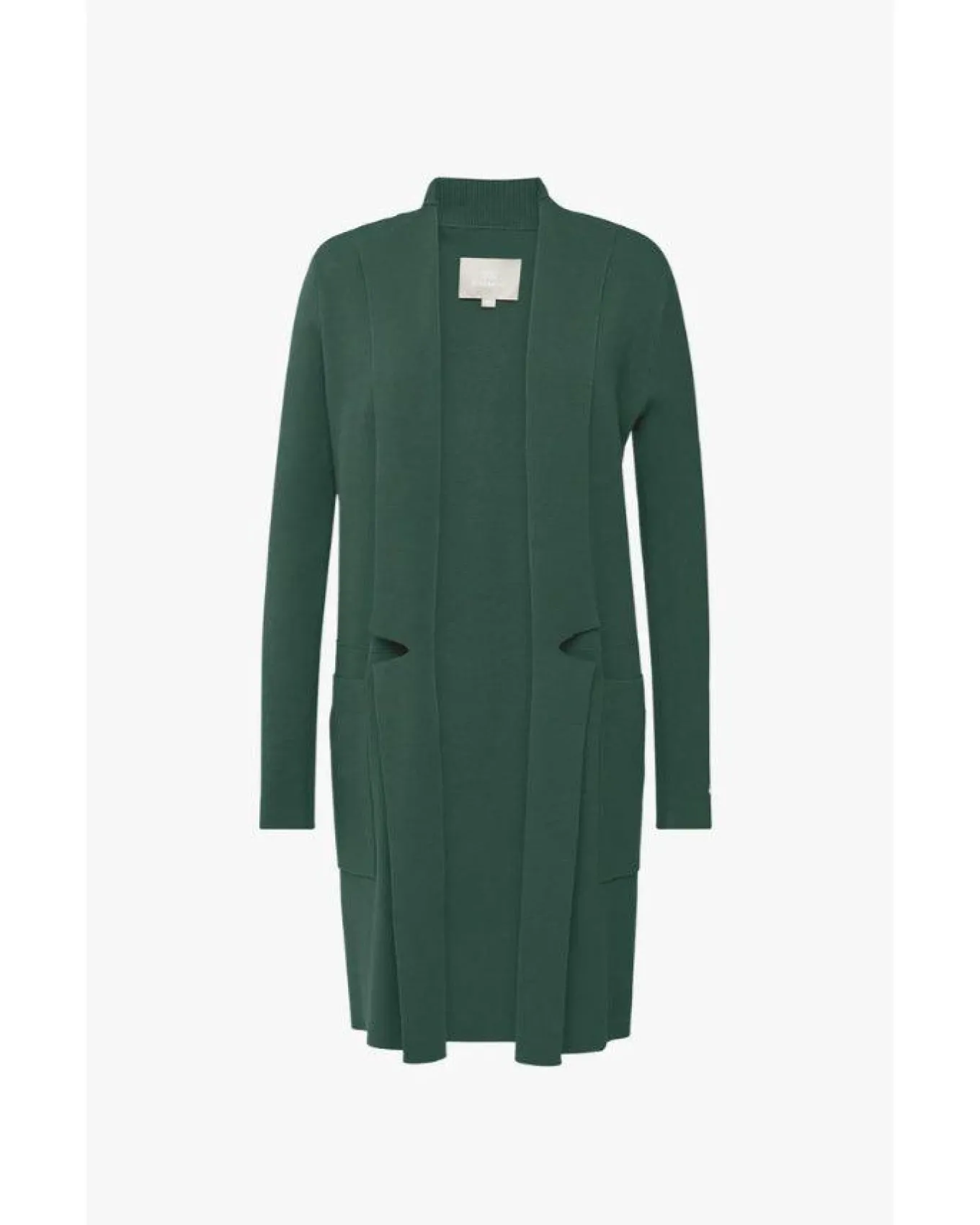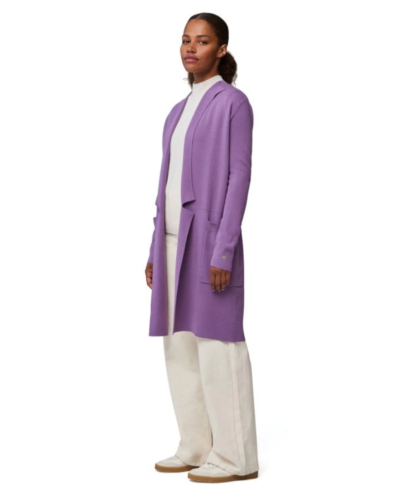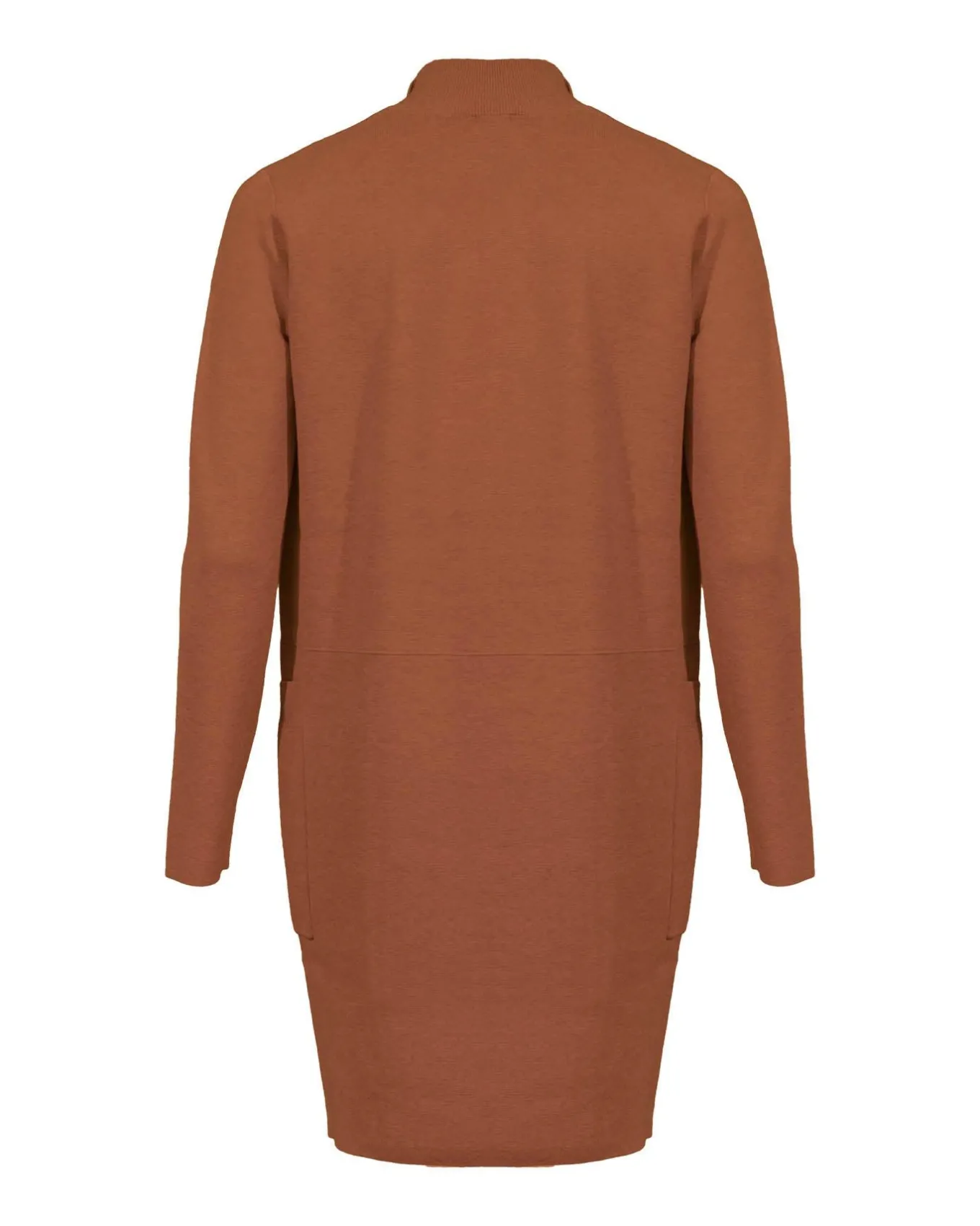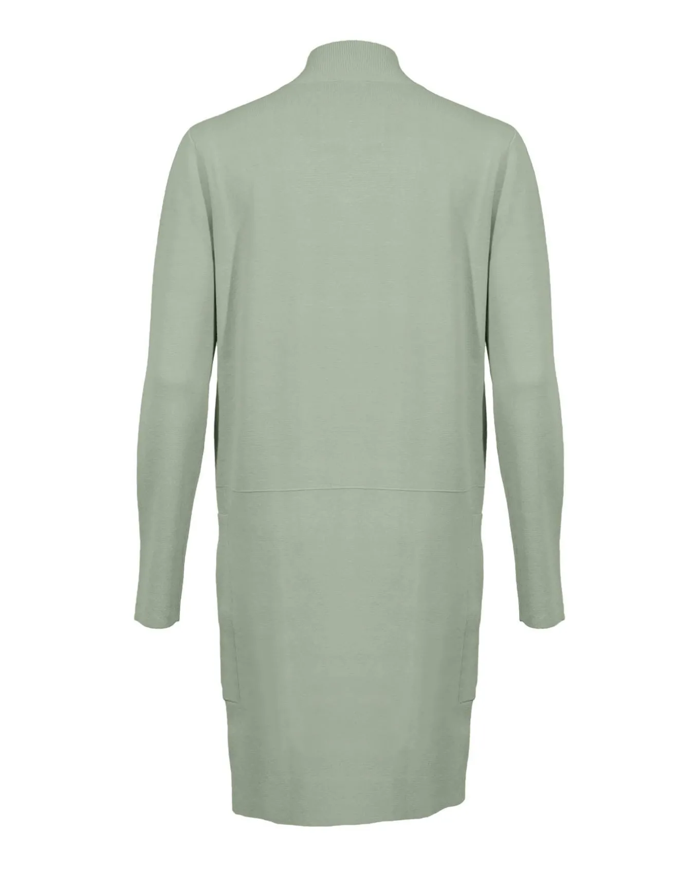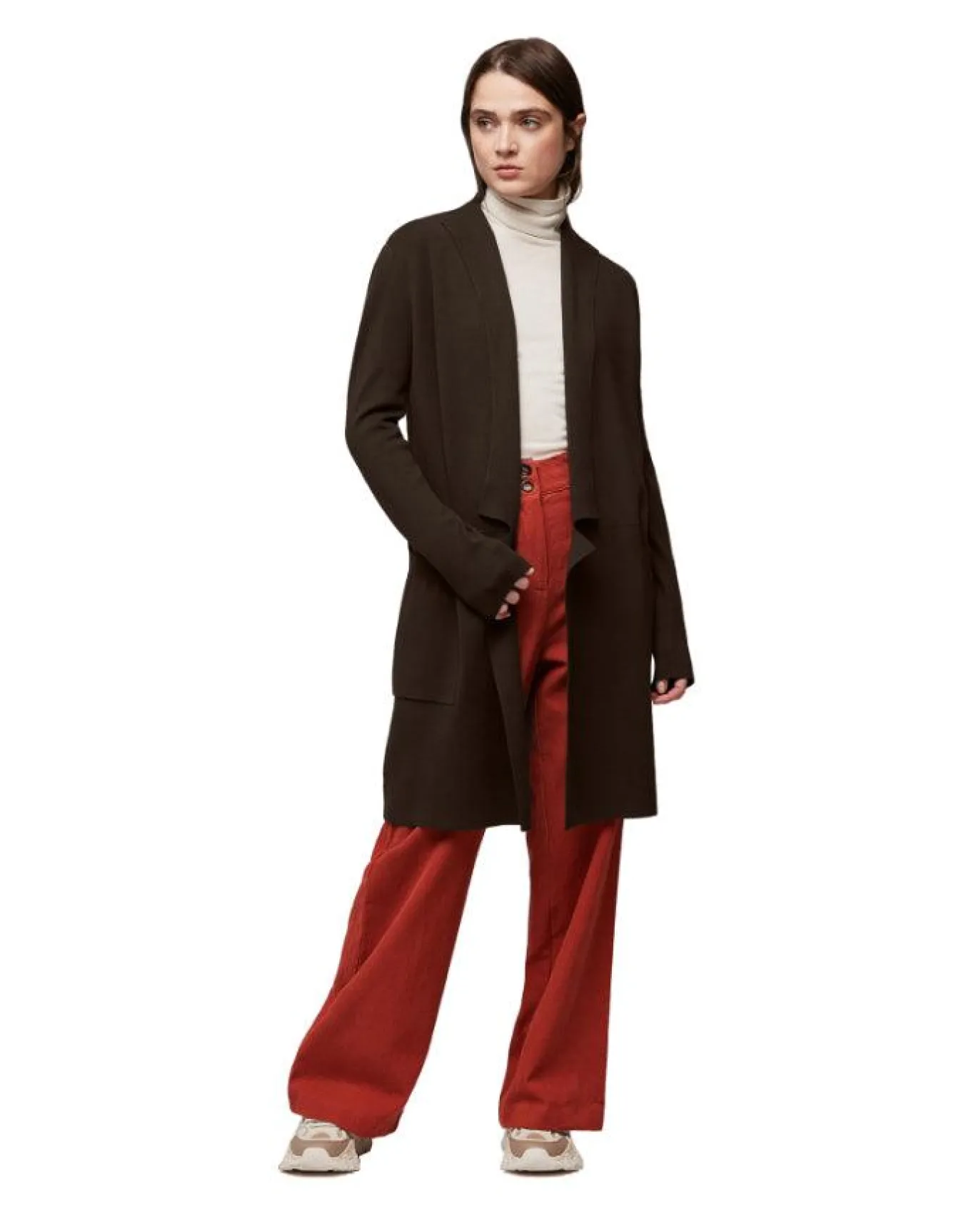 Soia & Kyo straight fit above the knee length coatigan with lapel slits, ribbed back collar and patch pockets with ribbed opening edge, Size XS – 34″ Length