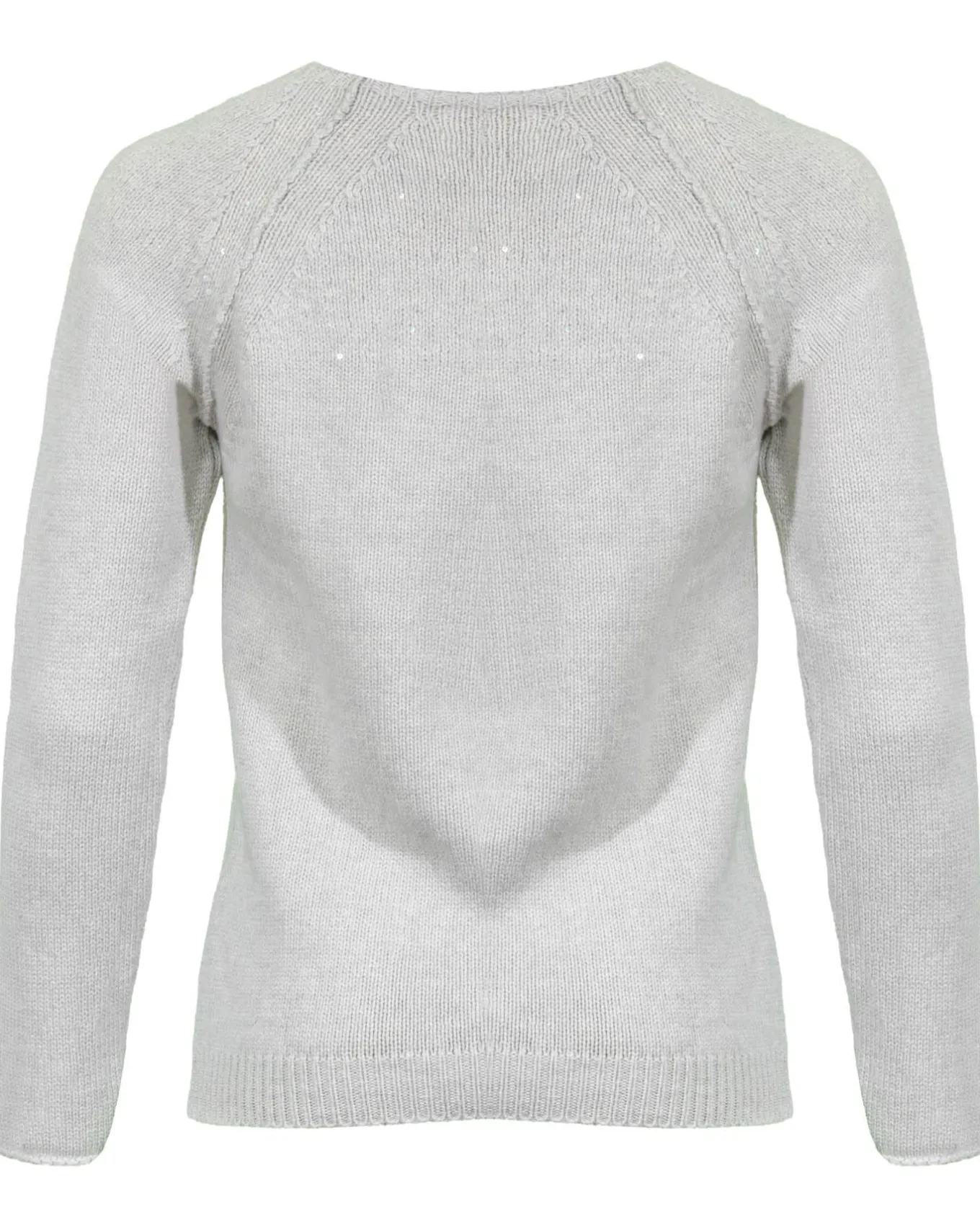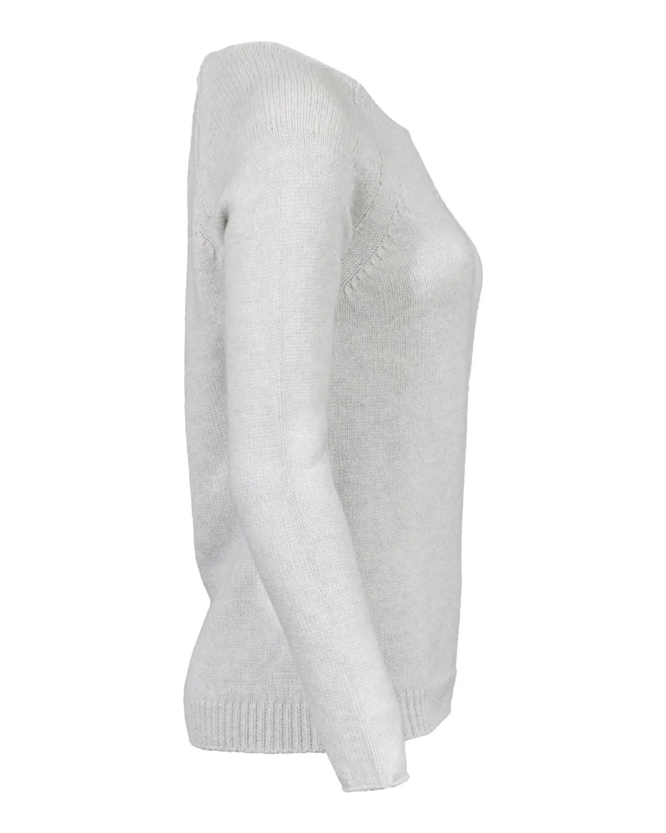 Semi-fitted long sleeve knit wool blend pullover with slight contrast detailing around necklineand a hint of sparkle