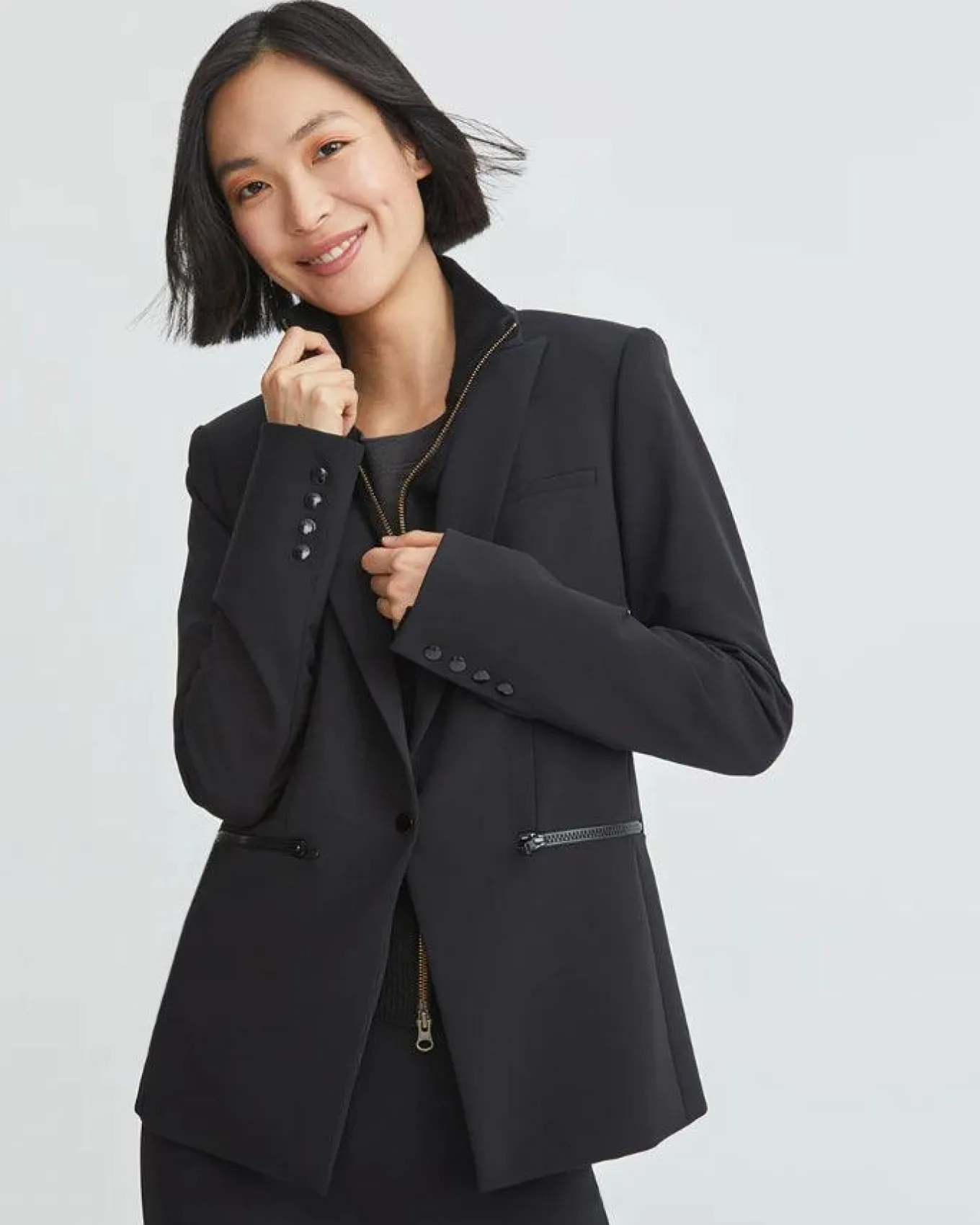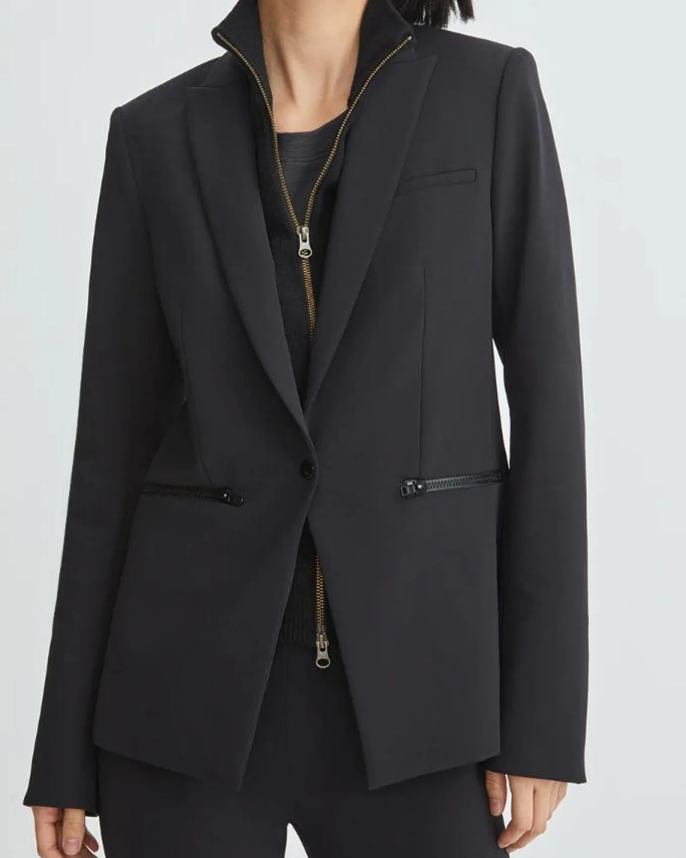 Luxe cashmere dickey with two-way zipper closure and ribbed trim is interchangeable with any dickey jacket
