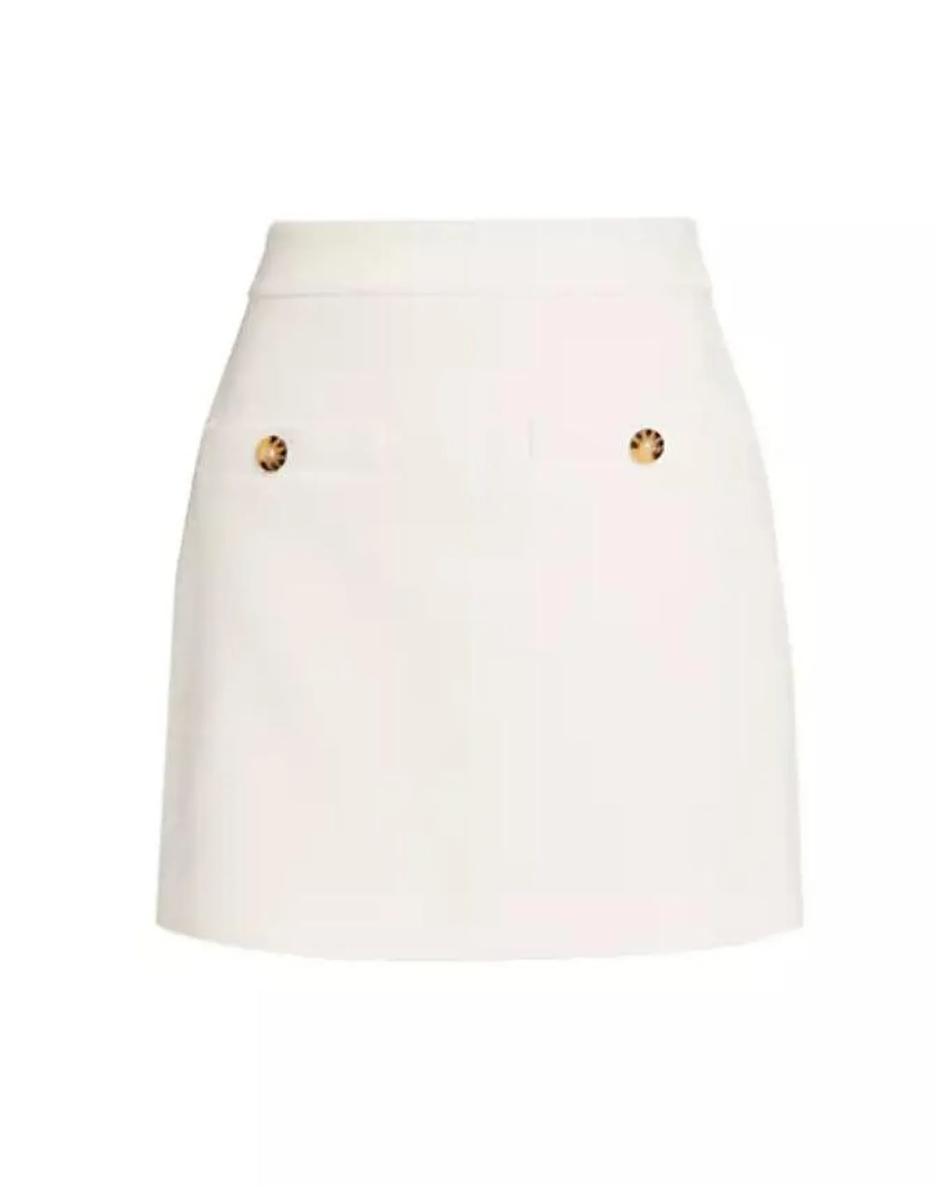 Veronica Beard stretch cotton mini skirt has a A-line silhouette with decorative buttons on front welt pockets, concealed back zip closure. Size 4 – Length 16.5″.