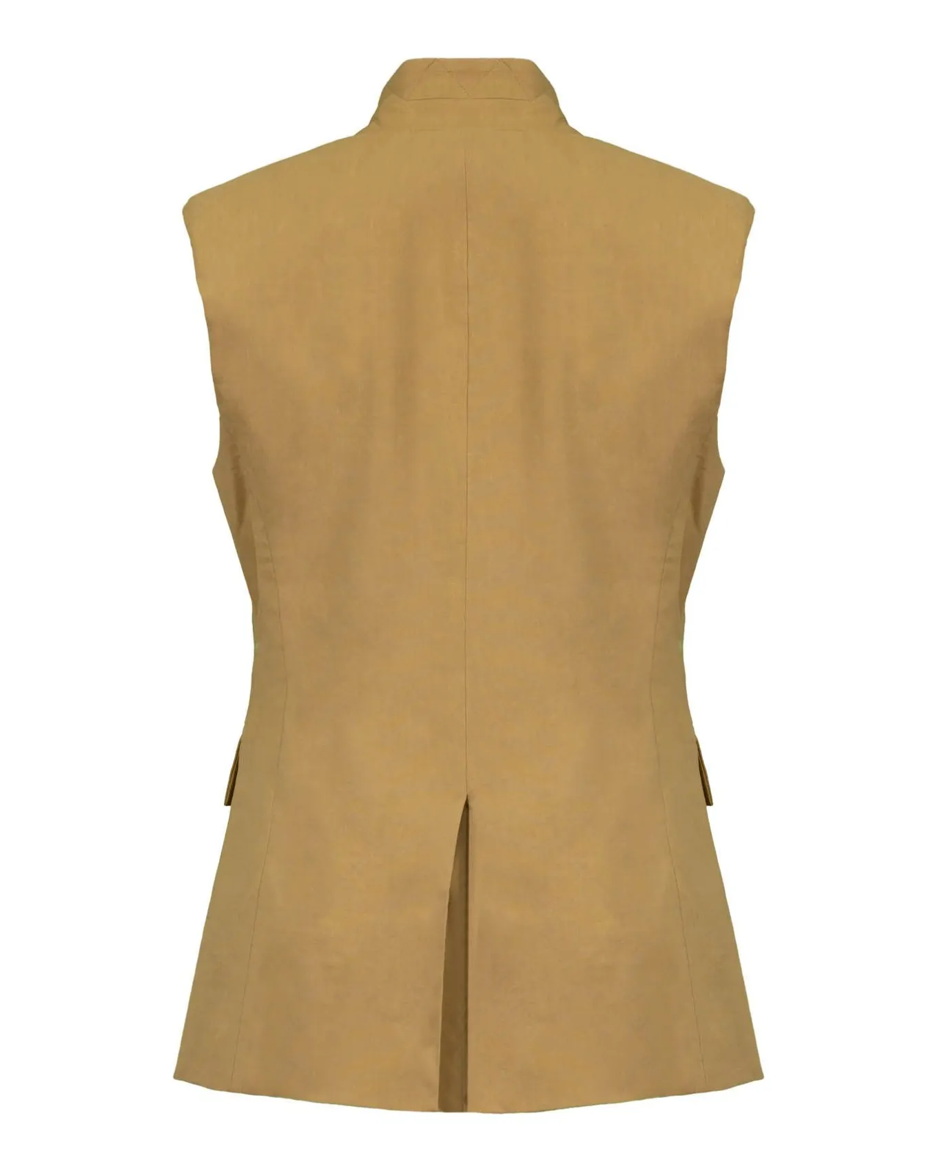 Tailored double breasted vest in relaxed linen blend with standing collar