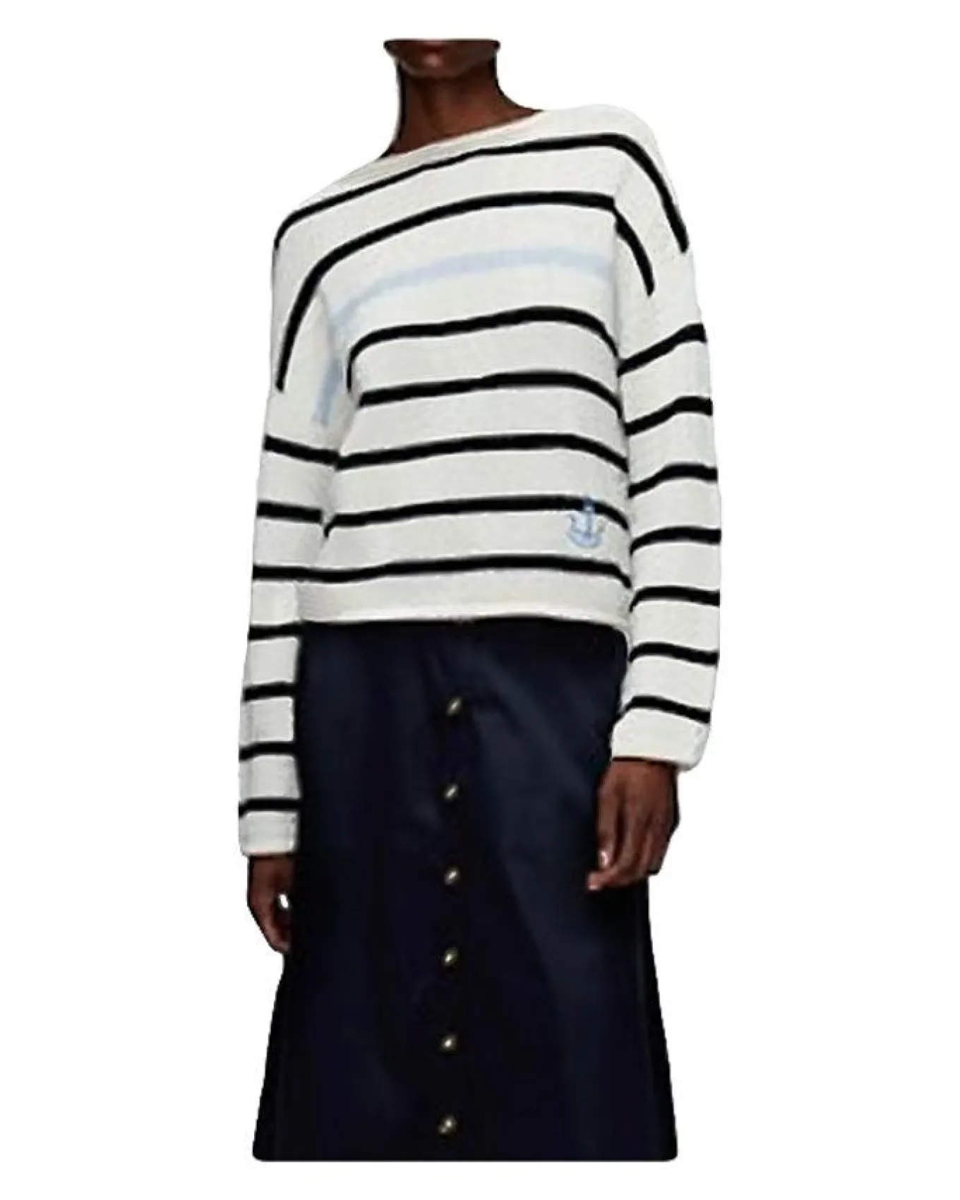 Veronica Beard cotton striped long sleeve sweater with wide round neck and a contrasting stripe detail.
