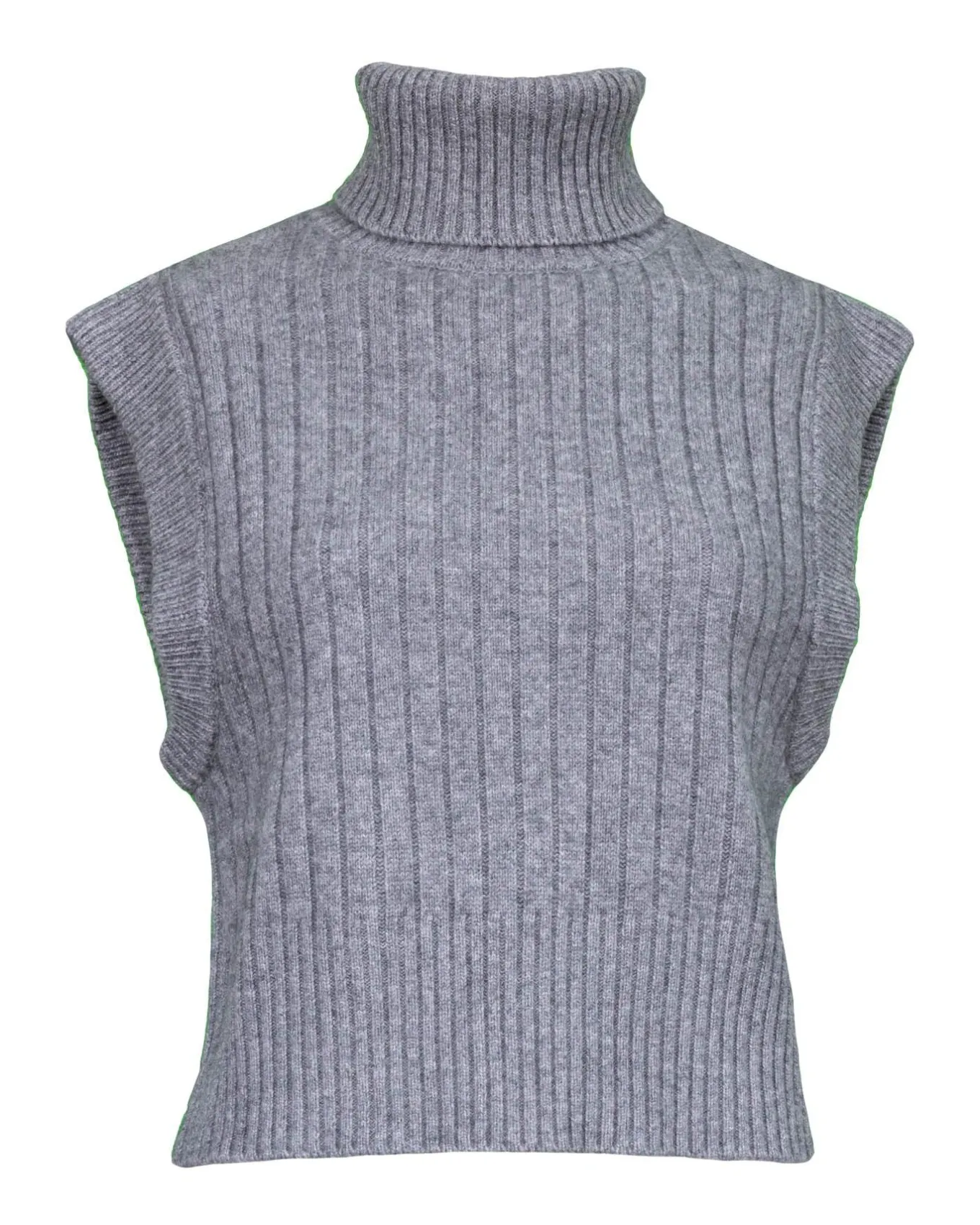 Easy fit wool cashmere mix turtleneck vest with wide ribbing on body and smaller ribbing on neck, large sleeve opening and hem